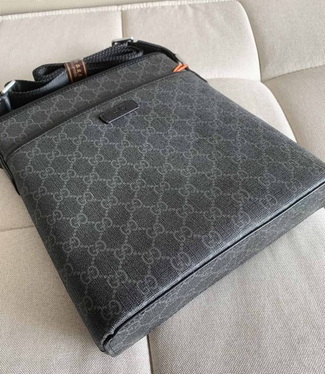 新款古奇男士上品,公文包手提斜挎包热销爆款,请认准皮质和细节,高端大气上档次原版质量原版Pvc搭配牛皮 和高档进口五金,皮质,柔软,手感超好 高档、大气、超有型 独家:首发原版颜色:黑色材质老花专用尺寸:23-27-5