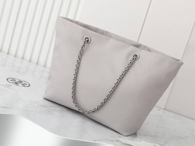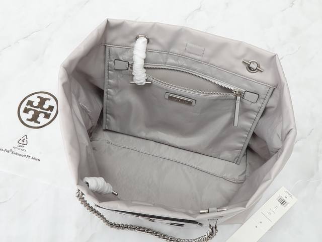 原单质量 尼龙布系列,新品注意细节 汤丽柏琦 Ella链条托特包柔软解构,以轻巧的再生尼龙材质与编织链条肩带而独具辨识。宽阔的内部空间可容纳日常所需,包括笔记本电脑,无论是日常或旅途使用,皆为理想之选。尺寸29Cm*32Cm*16Cm 搭配吊牌贴纸,仿为标,胶袋,品牌考贝纸