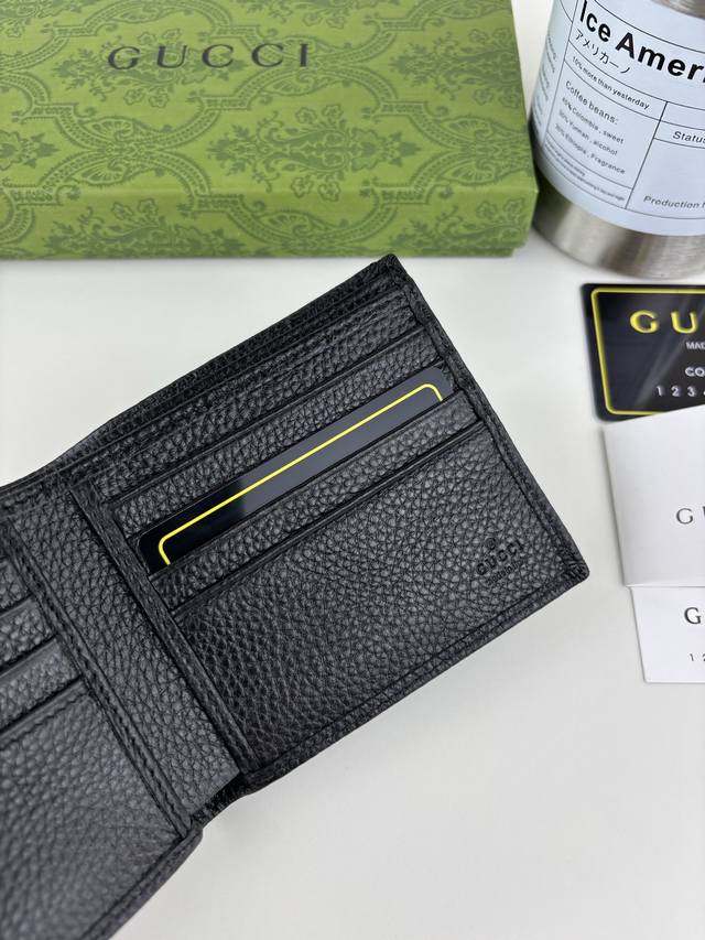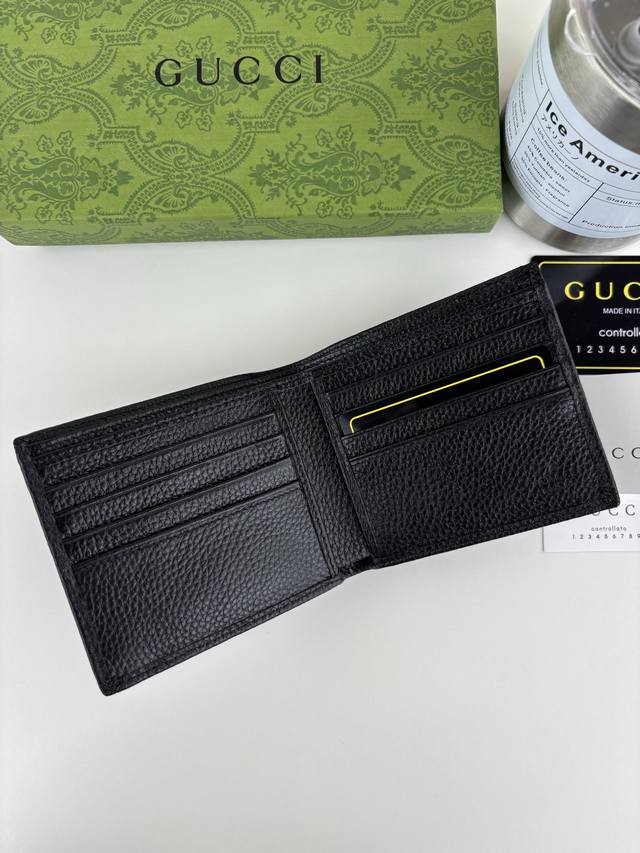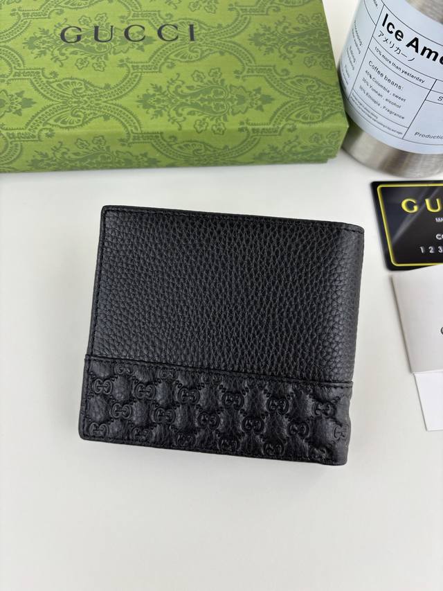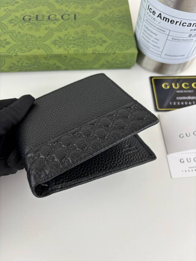 Guccl新款Gg Emblem系列超柔软荔纹 黑色压花 配皮钱包。 款号: 523669 尺寸: 11Cm X 9Cm X 1.5Cm 颜色: 黑色