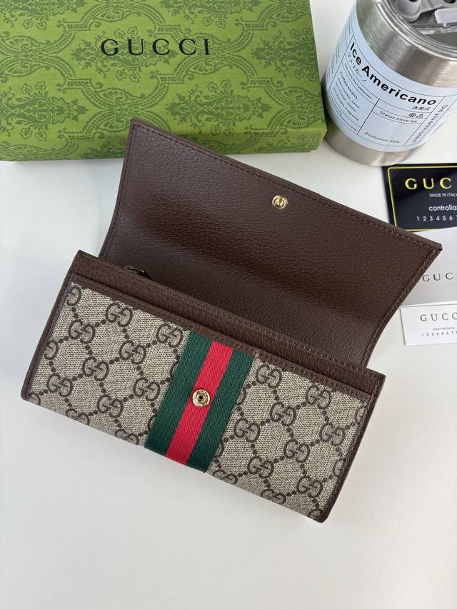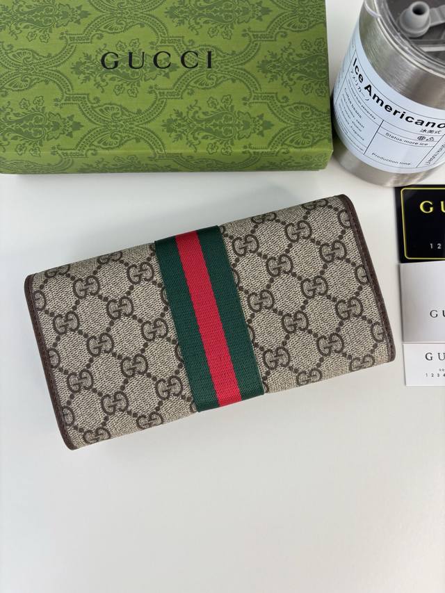 Guccl 官网同步新款!Ophidia系列~长款钱包,采用Gg Supreme 猪皮纹搭Pvc配以标志性双G 五金唛头,经典著作红绿色织带,高端棉布拉链~精制