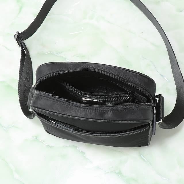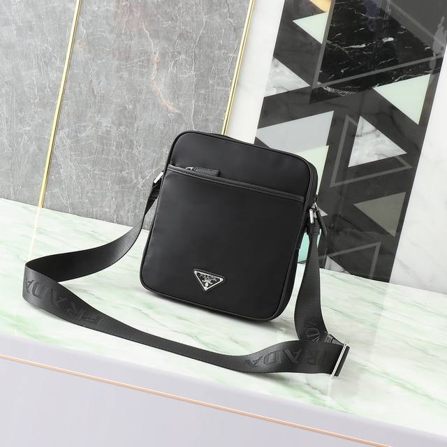 / P家新款男包,2Vd143黑色,原单货,尼龙和Saffiano皮革饰边,可调式尼龙肩带 ,抛光钢质配件和黑钛拉链 ,隔层多多,一个拉链夹层 前后两个拉链外袋,男