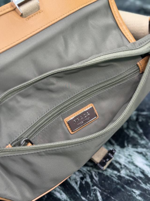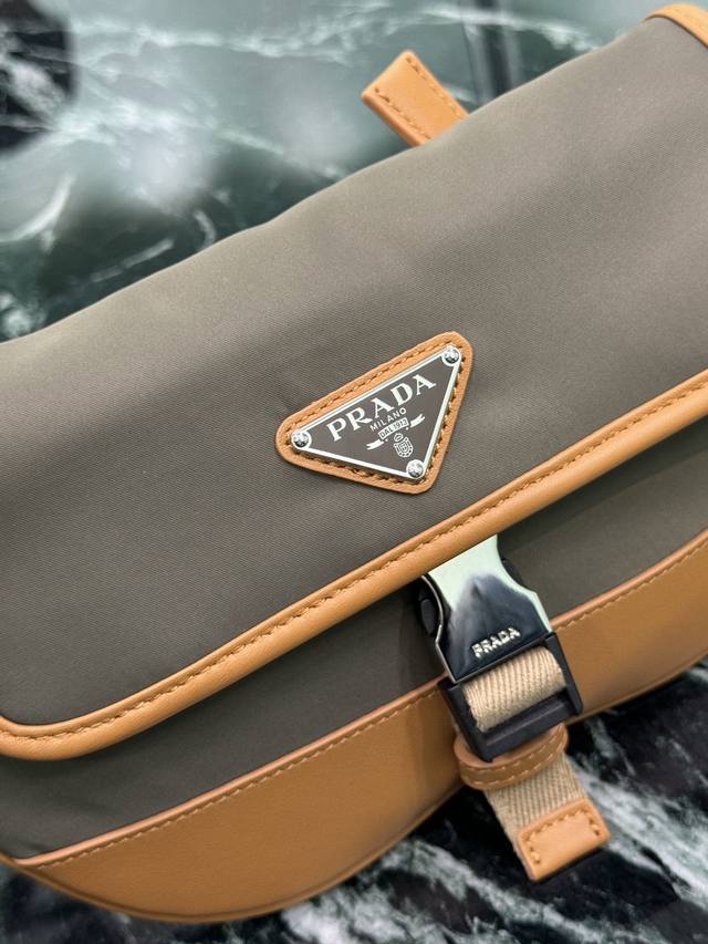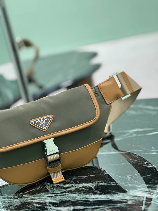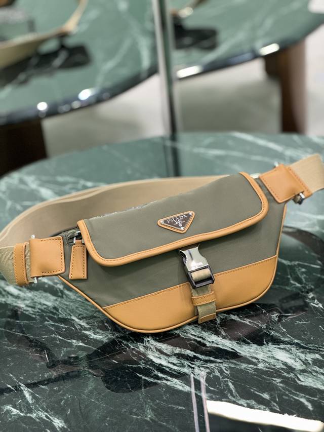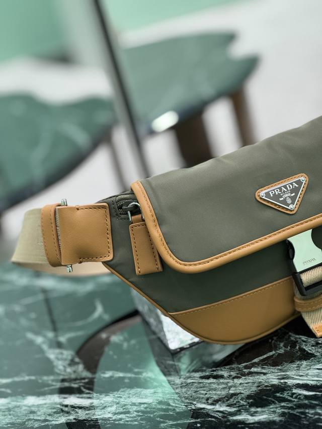 男士胸包 这款百搭时尚单肩包采用进口尼龙材质。小巧款型点缀皮革饰边,侧面插扣等细节精致而实用,可调节肩带便于斜挎。涂珐琅三角形金属徽标彰显品牌经典特色。又可当胸包又可当腰包,上身效果非常酷,轻便又实用。 尺寸:长18X高15Cm 款号:2Vh176