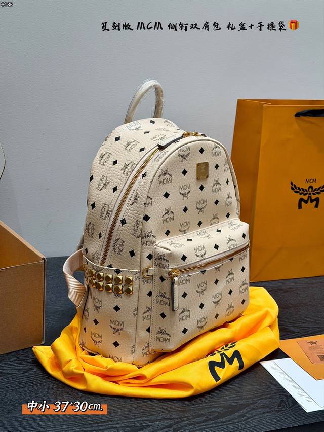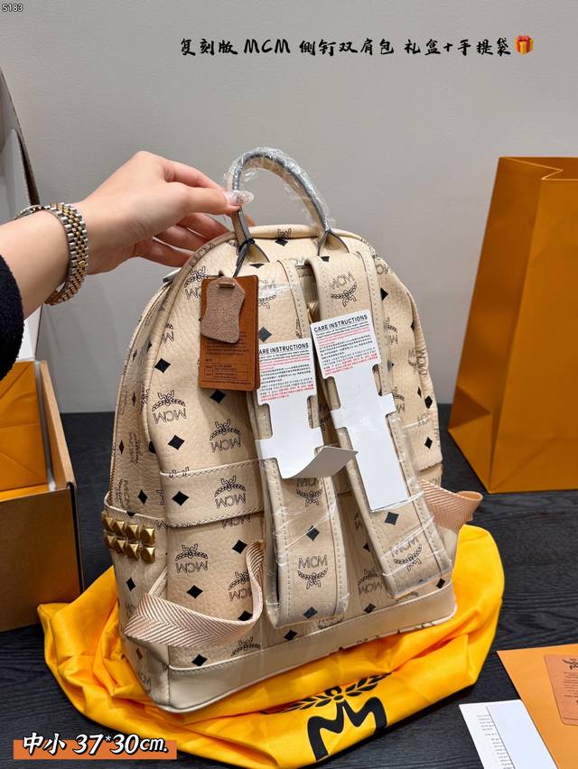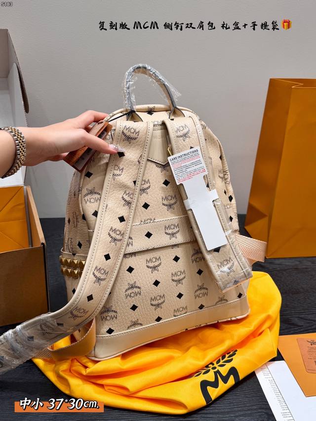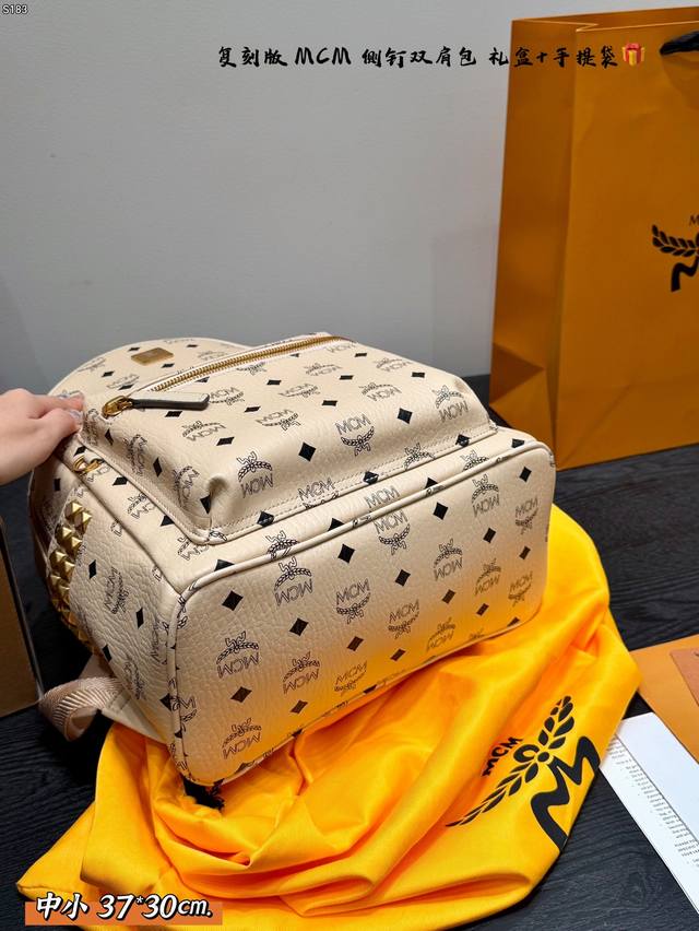 手提袋礼盒包装 复刻版!中小 Mcm经典双肩包 原单!原单!原单! 立体而自然,全新升级 以中轴为对称中心线的上线倒向对称, 十分完整完美, 尤其包型 超有弧度感的! 尺寸: 37*30Cm 中小