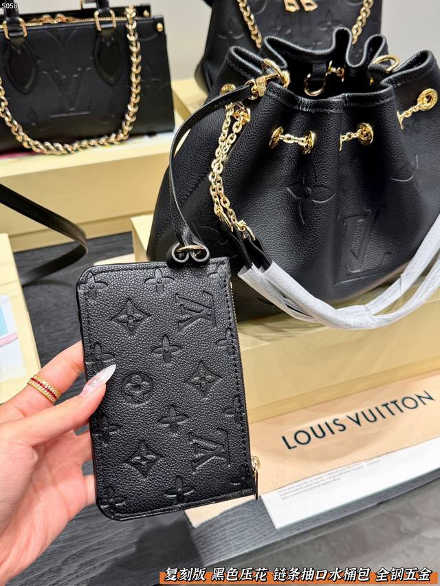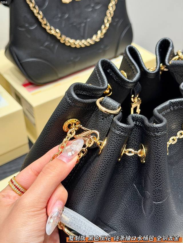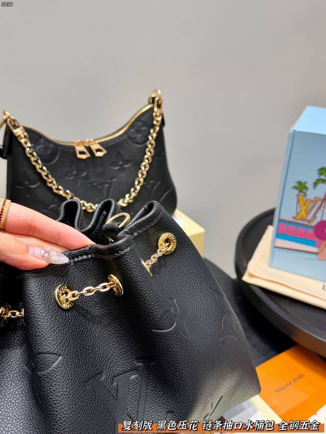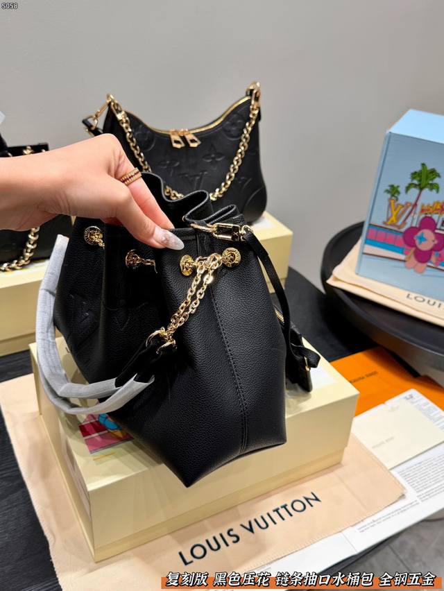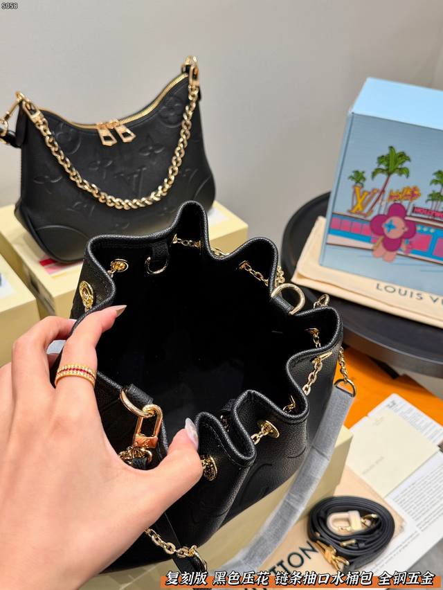 礼盒包装 复刻版 全钢五金 Size:28*20Cm Lv 新品链条抽口水桶包 高级压花黑色大花喷绘Logo Summer Bundle 最美最百搭~ 眼光真不
