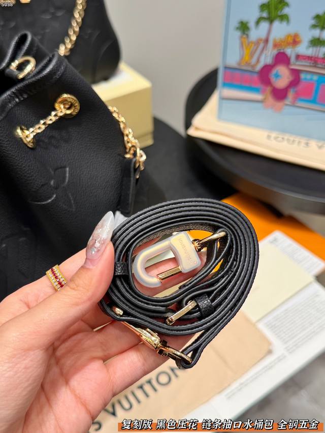 礼盒包装 复刻版 全钢五金 Size:28*20Cm Lv 新品链条抽口水桶包 高级压花黑色大花喷绘Logo Summer Bundle 最美最百搭~ 眼光真不错哦