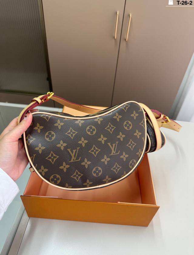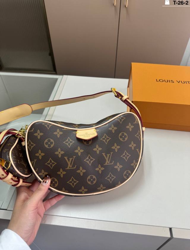 芯片版本 Lv 新款可颂包 二合一小豌豆 颜值天花板 百搭的V老花包身 流畅豌豆包型 美丽的同时保证了包身的容量 T-26-2尺寸25×15折叠盒
