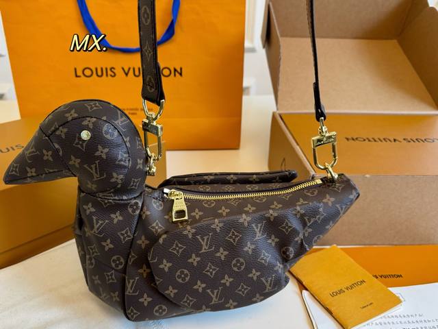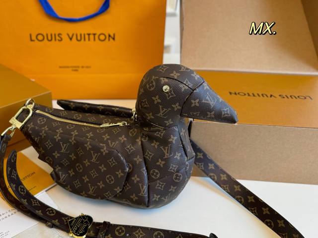 / 折叠盒飞机盒 Size:26×14 Lv路易威登新款Nigo老花鸭子手袋 借用街头艺术的标志性动物影响 打造此款Duck Bag手袋,精致百搭 肩带调节超短,对