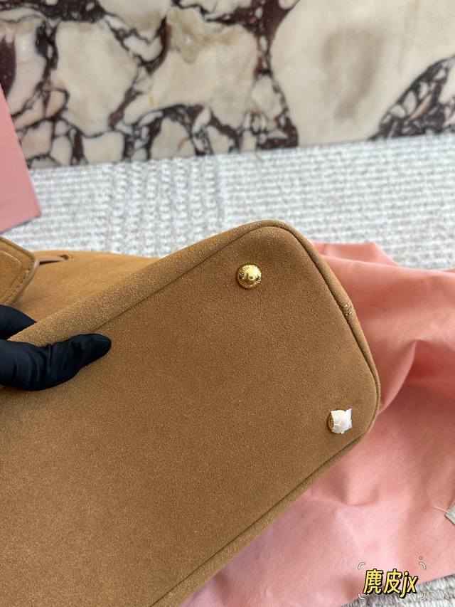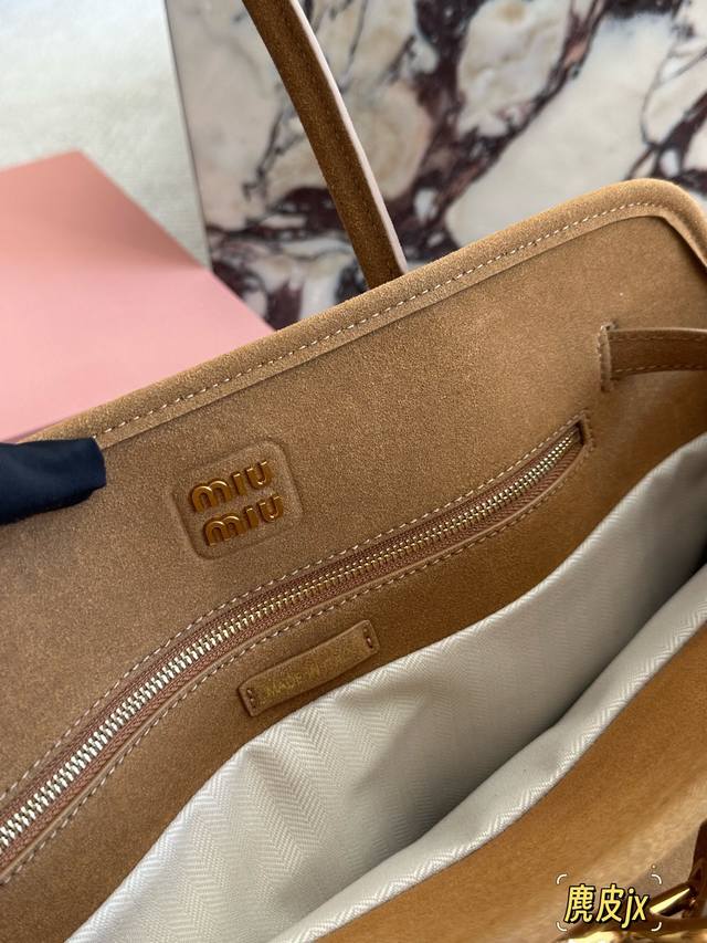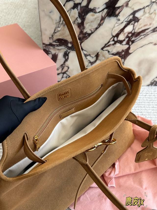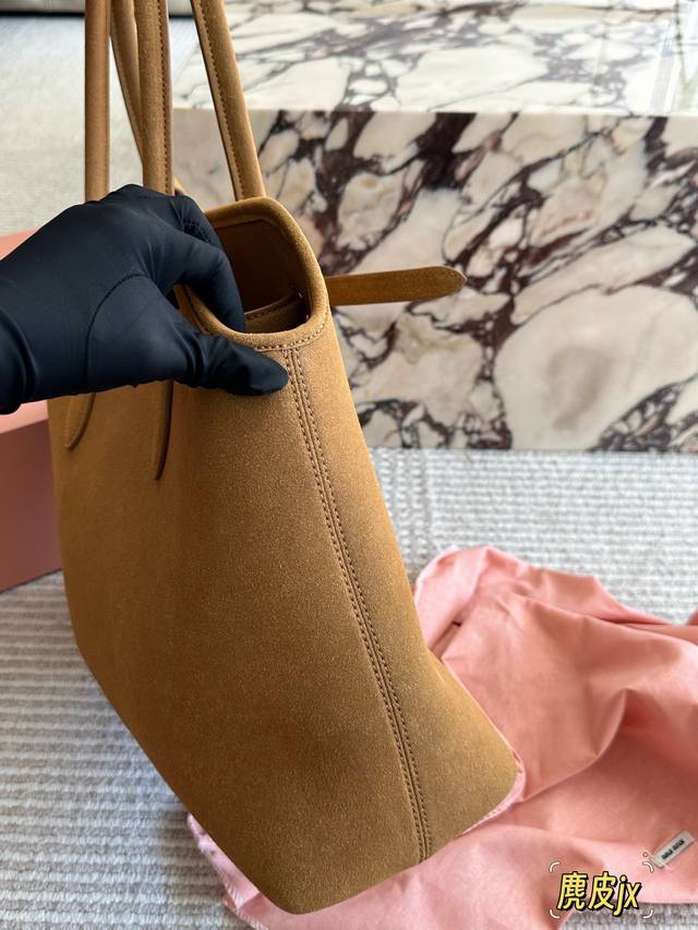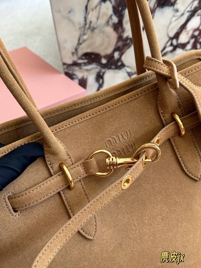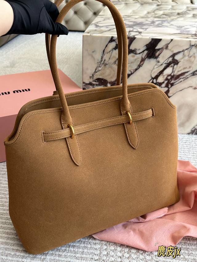 麂皮 Miumiu新包 秋冬看秀的时候就觉得一定要拿下的新款 实物到手,超级喜欢 做旧褪色感的皮革颜色与质地,配上金属皮带搭扣 日常通勤也够了 酒放得下一瓶Miu里Miu气 尺寸 40 30Cm 配盒