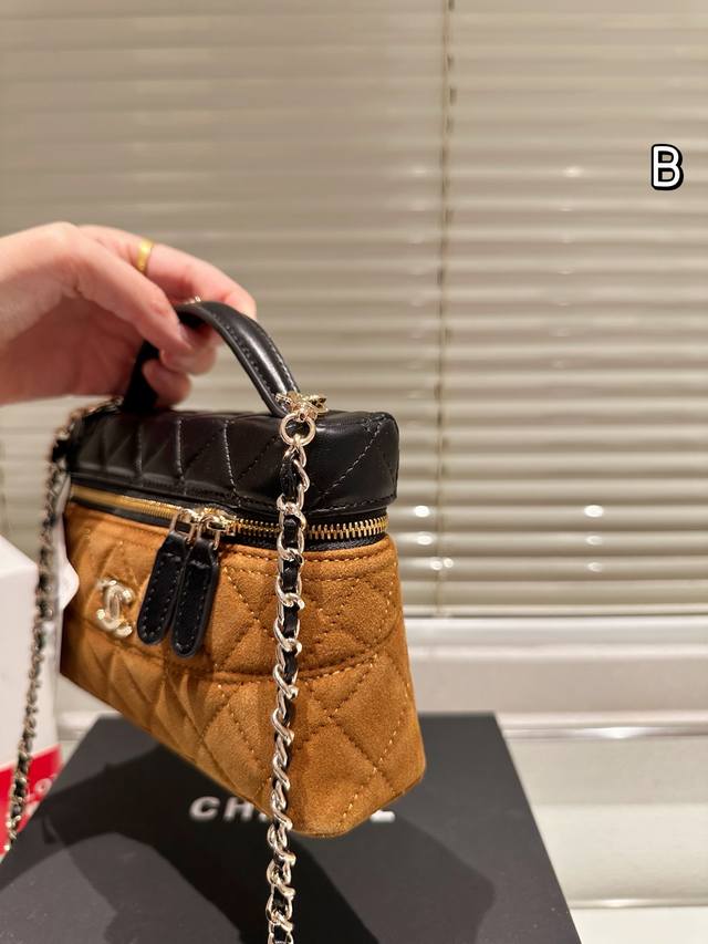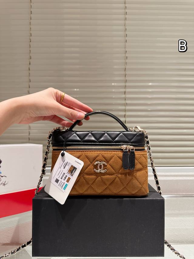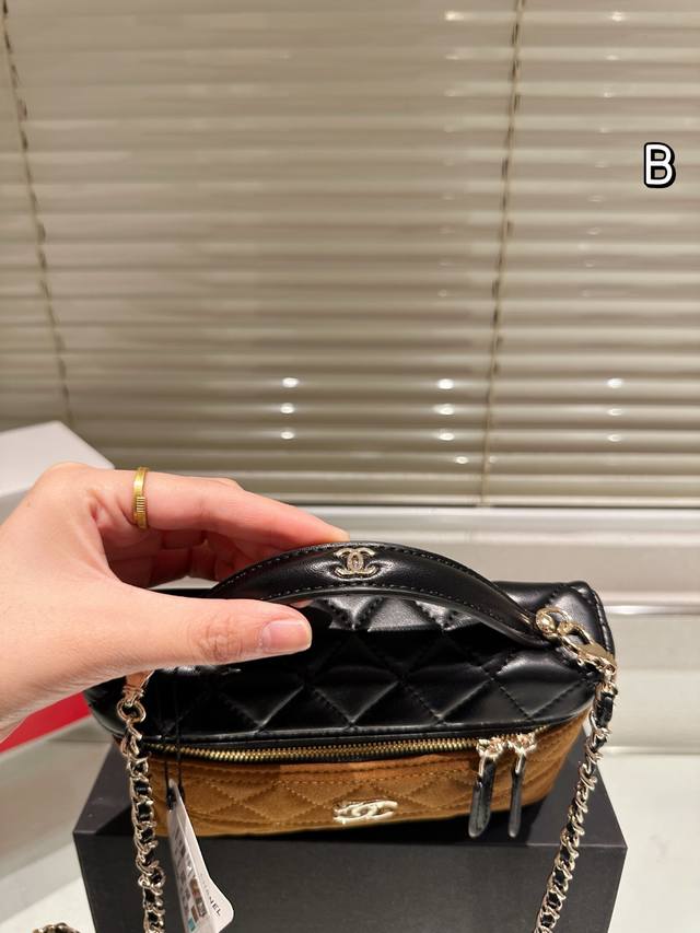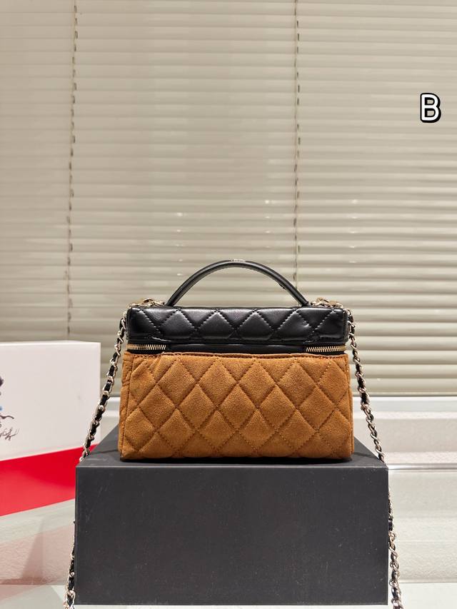 / 麂皮 Chanel 黑棕拼色盒子包 这款Chanel黑棕拼色盒子包,经典菱格纹+优质羊皮,质感细腻又耐用。黑棕拼色设计超有复古高级感,链条肩带可手提Or斜挎,灵