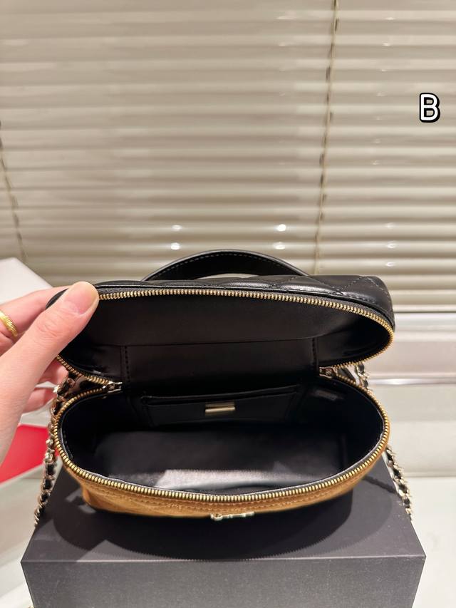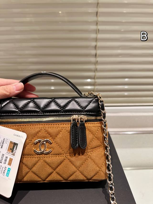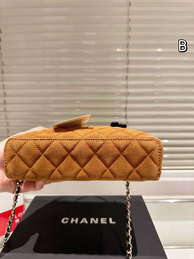 麂皮 Chanel 黑棕拼色盒子包 这款Chanel黑棕拼色盒子包,经典菱格纹+优质羊皮,质感细腻又耐用。黑棕拼色设计超有复古高级感,链条肩带可手提Or斜挎,灵活百搭!尺寸约20×12Cm,日常出行刚刚好,内部空间能装下日常小物。双C Logo+金属拉链,细节满分,秋冬搭配大衣或小皮裙都很出彩,实用又时髦,是香奈儿热门款之一