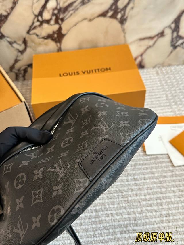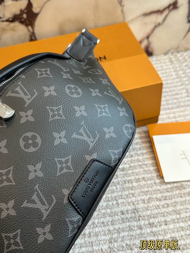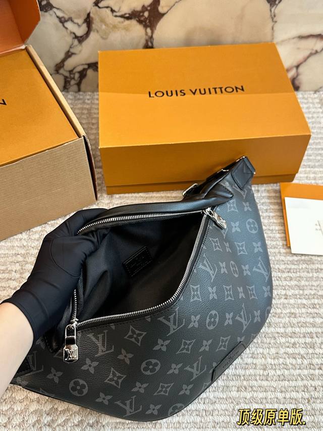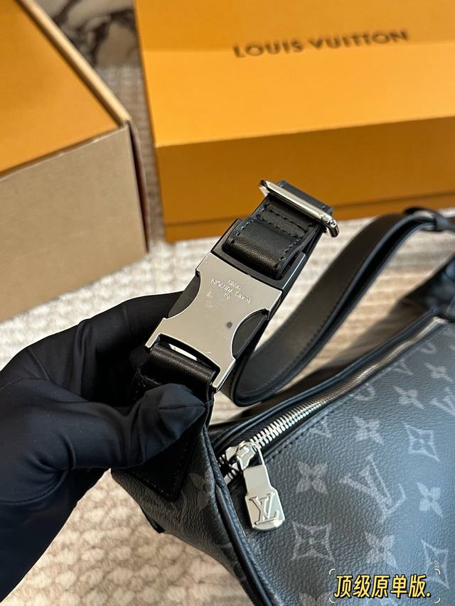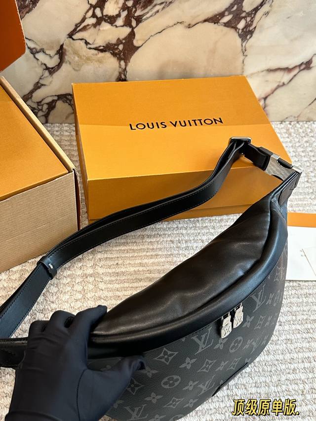 原版牛皮 Lv胸包送男朋友专属酷酷酷 此款Discovery腰包由Monogram Eclipse帆布制成,兼具休闲时尚气质与现代功能性。造型符合人体工学原理,