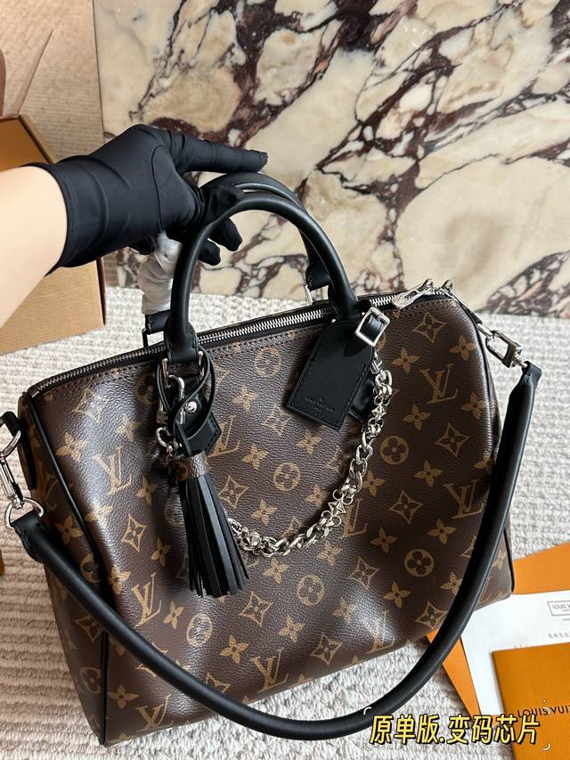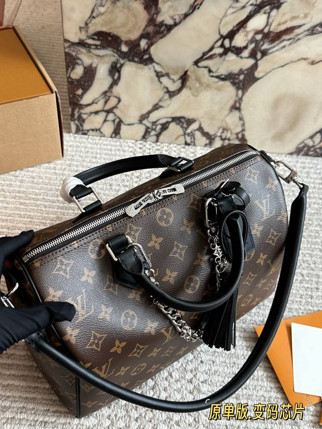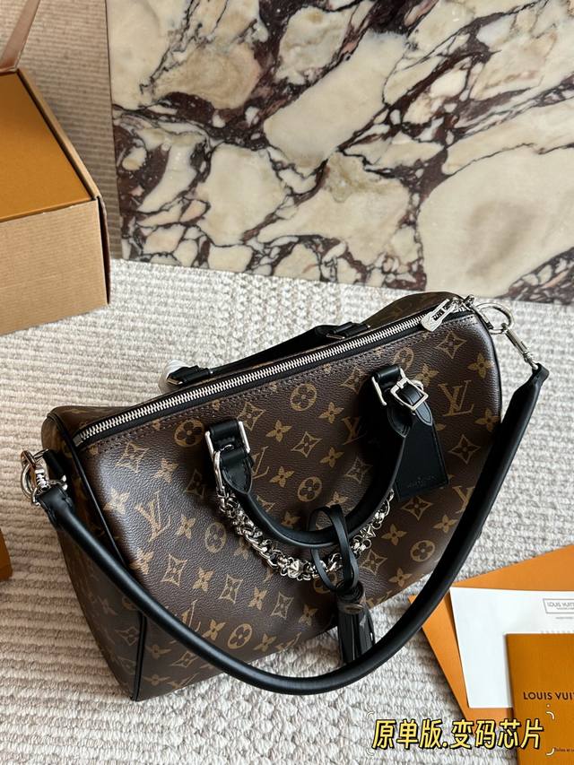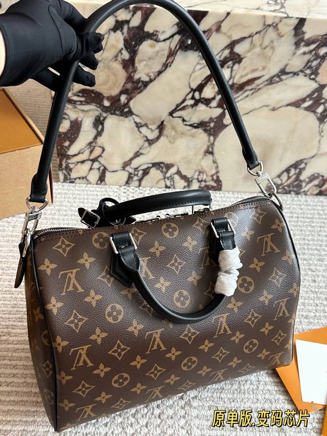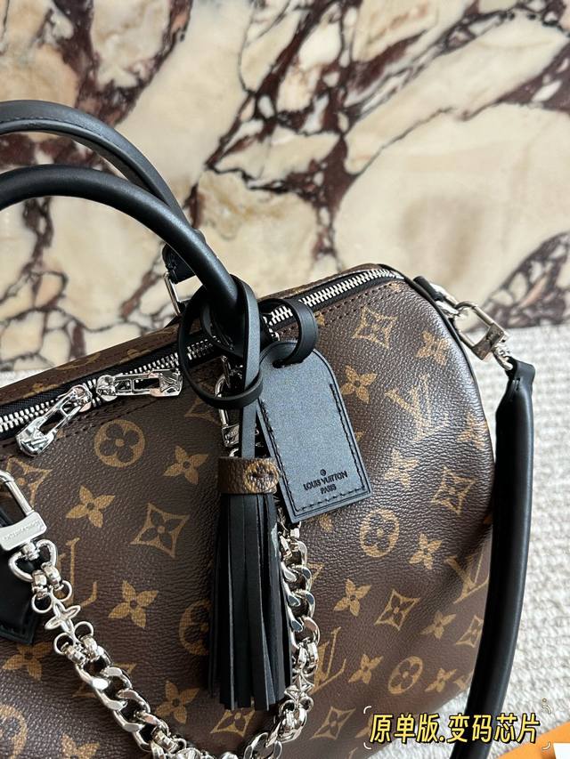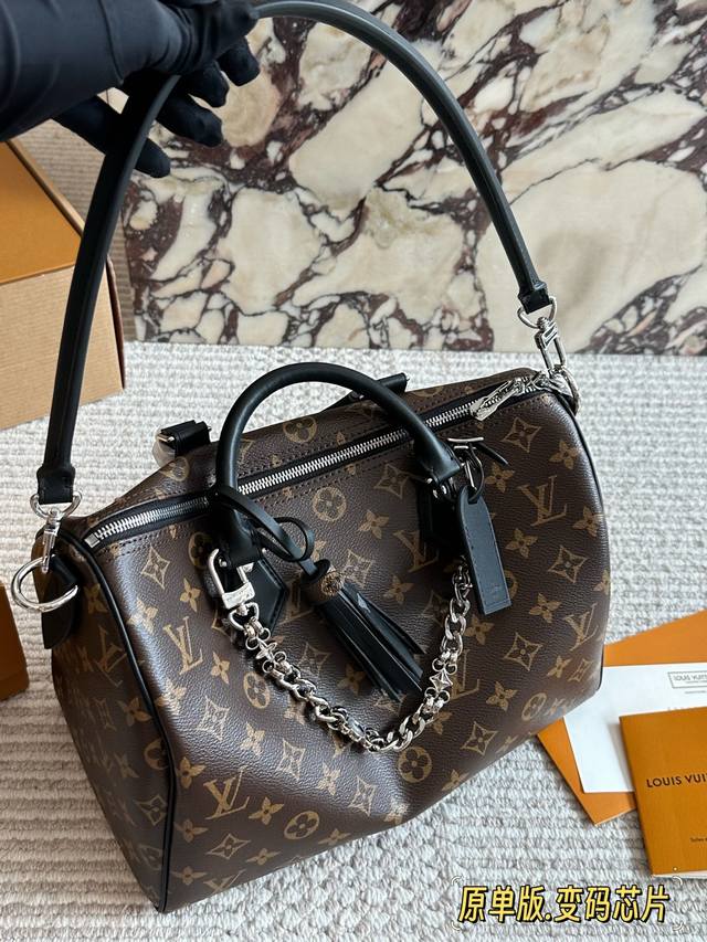 / 顶级原单 Lv Speedy Soft 30黑银老花包 Lv Speedy Soft 30黑银老花包,经典Monogram涂层帆布+黑色皮革饰边,银色链条超有现