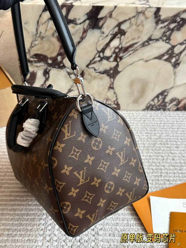 顶级原单 Lv Speedy Soft 30黑银老花包 Lv Speedy Soft 30黑银老花包,经典Monogram涂层帆布+黑色皮革饰边,银色链条超有现代感十。尺寸 30X21X17Cm,容量适中,通勤Or短途旅行都很Ok 图片包装
