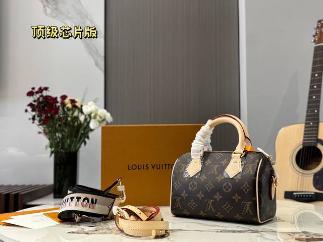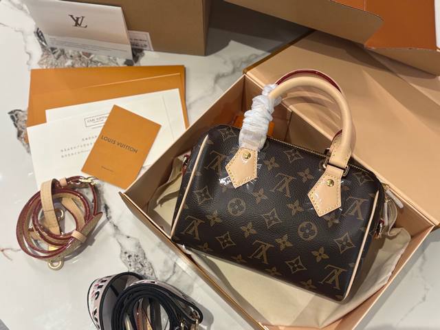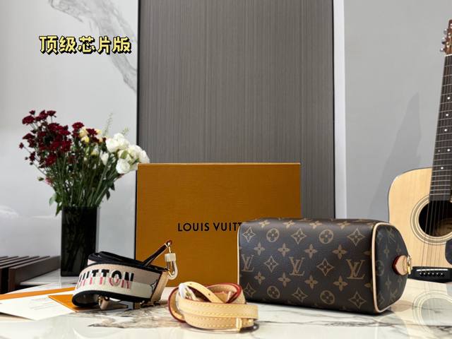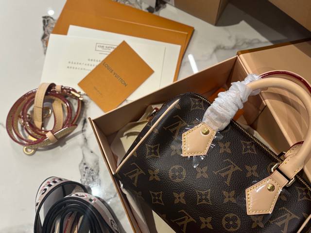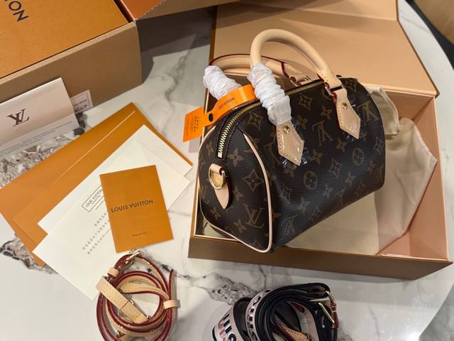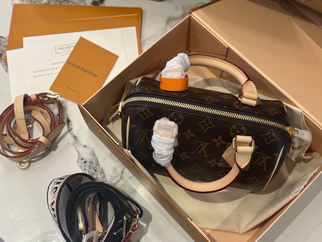 全套包装顶级芯片版 Lv Speedy20枕头包 新款Speedy20,宝藏尺寸,因为20的尺寸不大也不小,容量也特别大 两条肩带随意切换,20的尺寸刚刚好。 Speedy 系列一直是专柜最热、 最难抢的款, Speedy20除了尺寸改动外,最大的改变就是把以往的植鞣革肩带换成了比较宽一点的帆布刺绣Logo肩带,而且是可调整肩带,肩带的款式挺现代的,给人的感觉就是非常的年轻活泼,配上这个包,整体的风格就很休闲。 Speedy20真的是满足了大家日常上班用包的所有幻想,值得冲哦