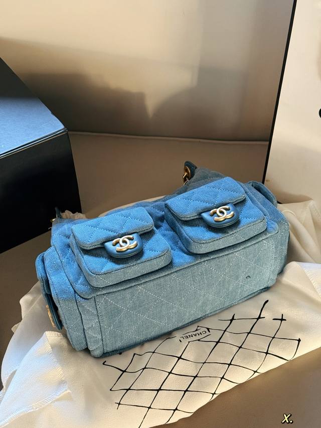 牛仔配盒 Size: 24*14Cm 小 小香家 25C Hobo爱了爱了 一眼就和其他包型不一样, 又酷又飒, 真的很好背! 包包超轻!新一季的包王! 包包上的口袋设计的也很多收纳性更强