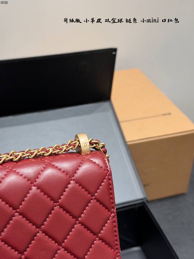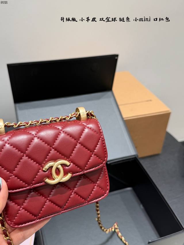 / 礼盒包装 升级品质! 尺寸12.9 香奈儿Chanel 小羊皮双金球链条口红包 小Mini迷你小方包 小废包 双珠链条的设计抽绳调节造型 当腰包时髦又可当小挎包