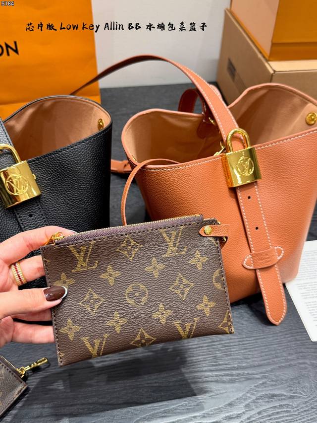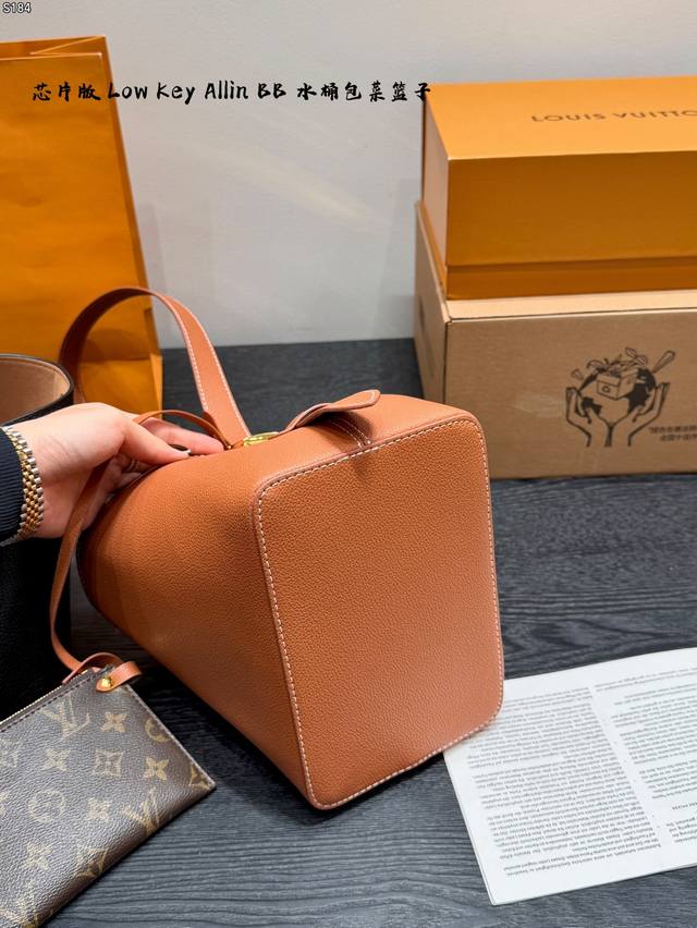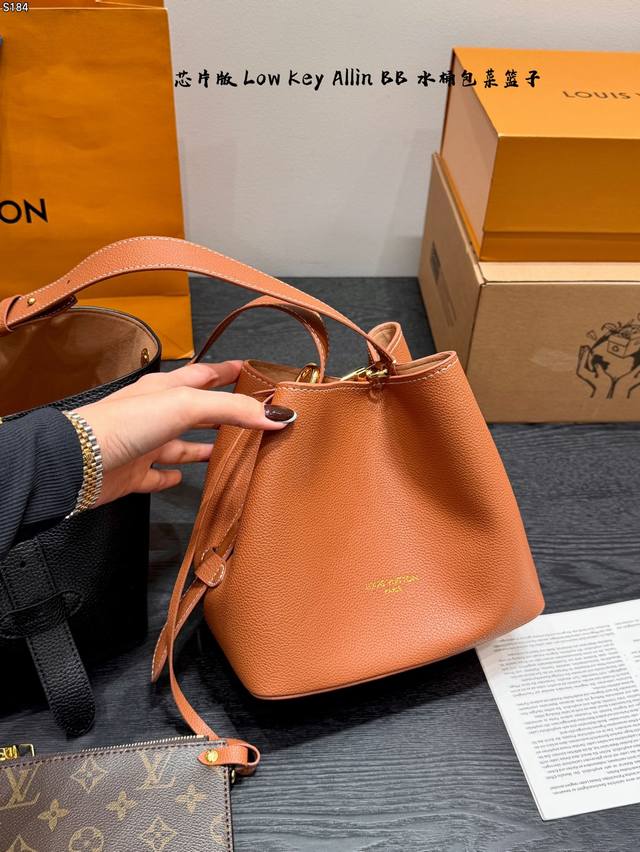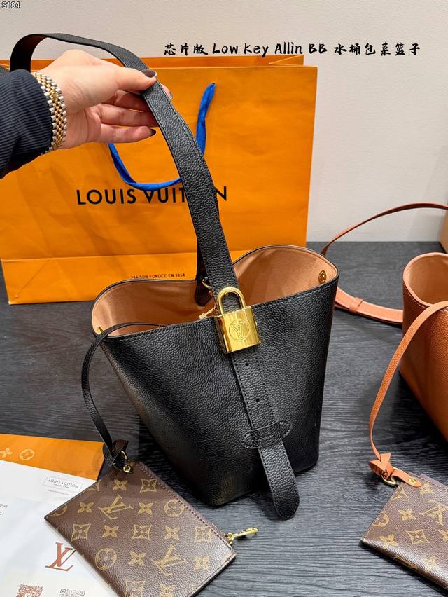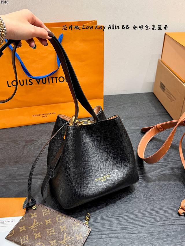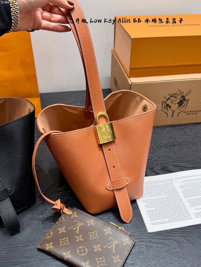 / 礼盒 芯片版 新款Low Key Allin Bb 水桶包菜篮子 采用粒面牛皮革打造立体包型,耐磨又能装。 做旧金属件+Lv挂锁头点缀复古质感,可拆卸Monog