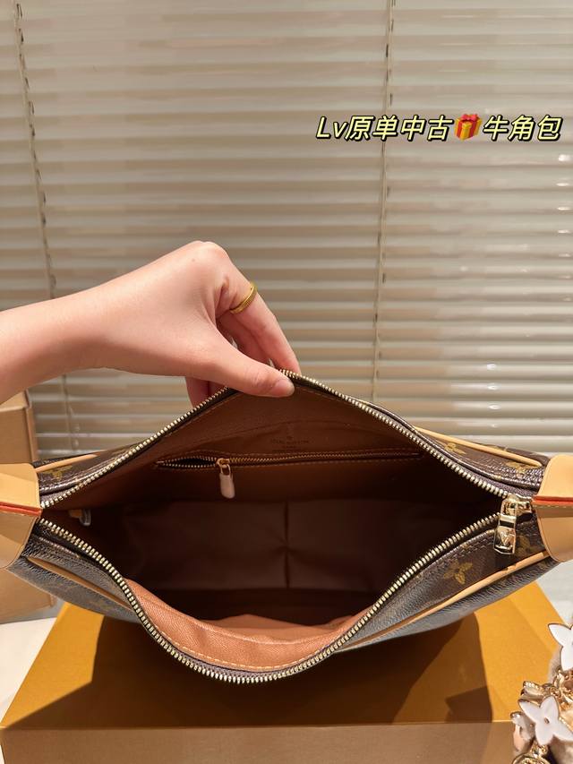 / 全套包装尺寸31*25 Lv 中古牛角包 经典Monogram老花帆布+牛皮饰边,复古优雅又实用!弧形包型灵感源自牛角,线条流畅,容量适中,通勤约会都很适合。肩