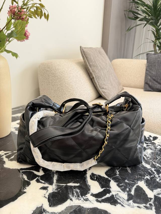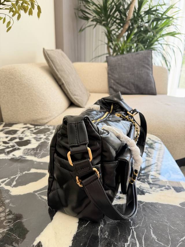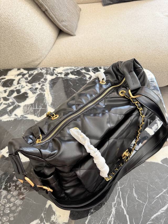 香奈儿25N滑雪系列尼龙包 香奈儿25N滑雪系列旅行包 黑色经典菱格纹,搭配金色链条和双C Logo,简约又奢华。包身轻便耐用,易清洁,适合通勤或旅行。中号尺寸22×44×18Cm,容量适中,肩带可调节,支持斜挎,实用又灵活。滑雪系列灵感源自冬季运动,兼具功能性与时尚感,秋冬搭配超有型。