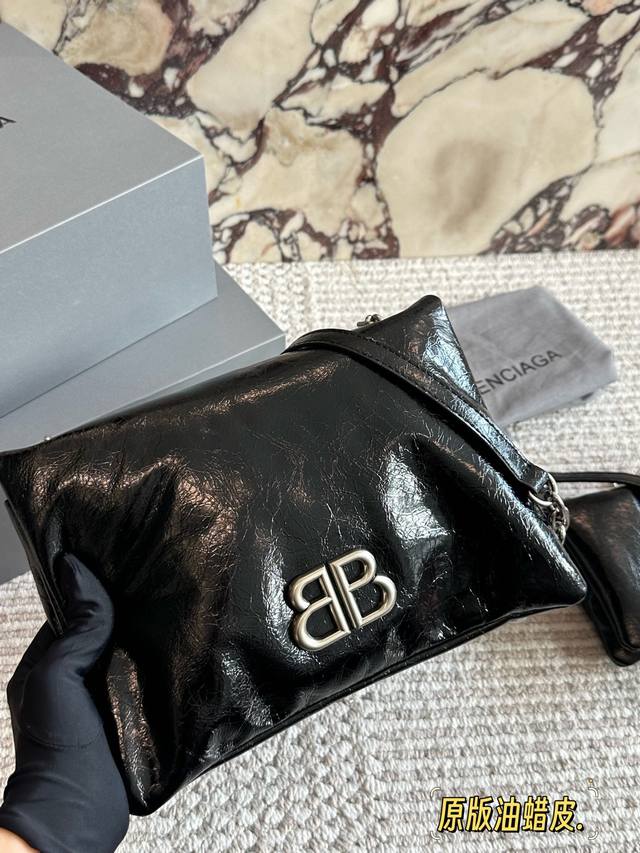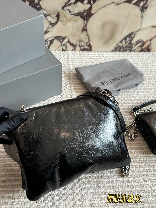 / 配盒 油蜡皮Size:26 20Cm 17 12Cm 巴黎世家新款链条包包 原来这么好看! 真的太高级了吧 大小刚好很能装,自重轻,链条可调节随心所欲的高级感满