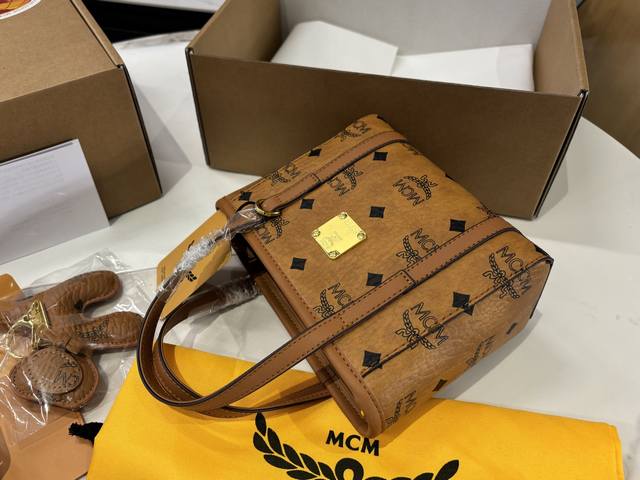 配飞机盒 Size:15×19 Mcm 托特包斜挎包背提包水桶包单肩包 迷你 一只可可爱的水桶包 这个mcm水桶包包。...