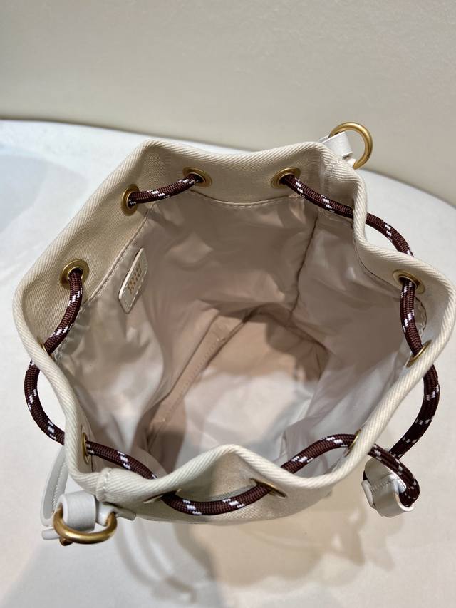 新款水桶包5Nr038 DDD 这款水桶包采用华达呢织物与同色系刺绣徽标,赋予了这款小袋百搭特质,双色编织饰带抽绳彰显M永风格本真,编织抽绳开合,皮革手提柄。容量空间大。宝宝们,赶紧入手吧 DDD 长15.5X高23X底10Cm DDD