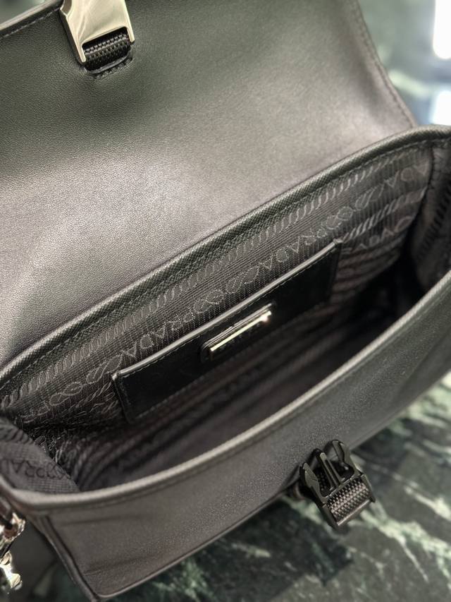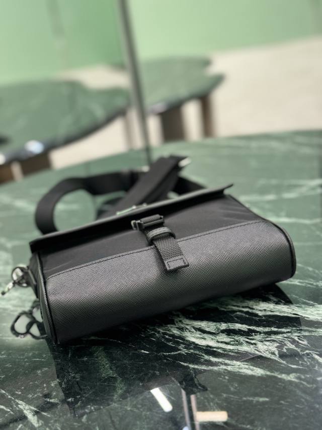 新款邮差包 DDD 这款单肩包采用Re-Nylon再生尼龙材质打造,并饰以皮革细节,彰显充满现代感的材质混搭设计。再生尼龙纱线Econyl通过提纯海洋塑料、渔网和纺织纤维回收物制成。包身饰有涂珐琅三角形金属徽标,以品牌历史上的标志性元素塑造鲜明的设计风格。 DDD 尺寸:长20C高15.5X底4Cm DDD 款号:2Vd044 DDD