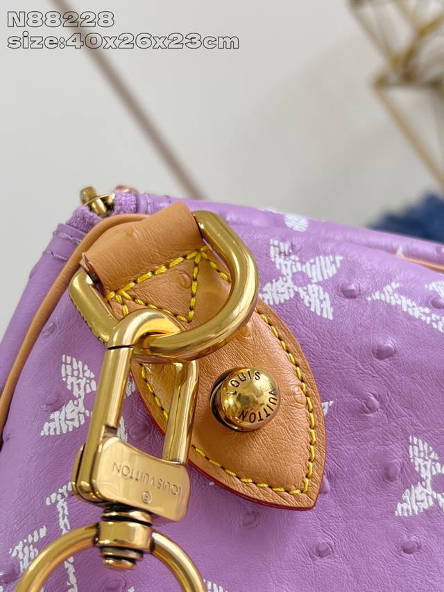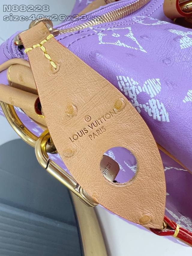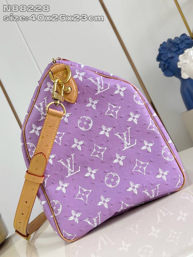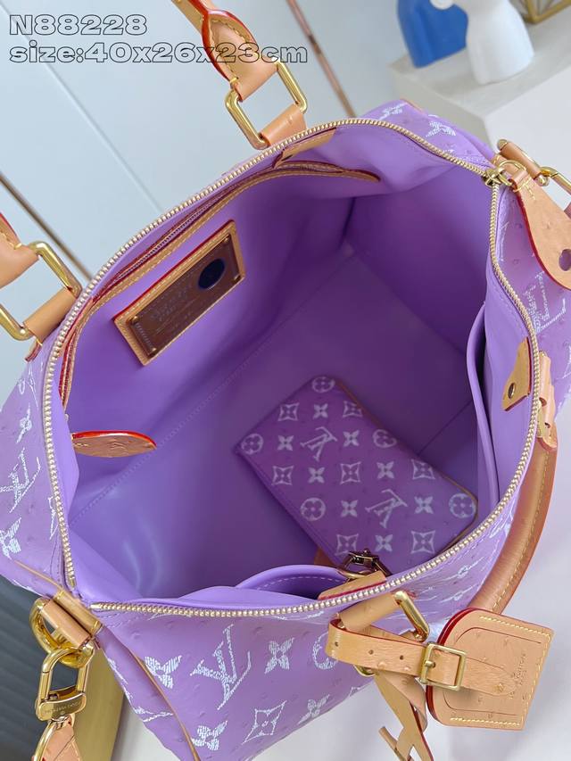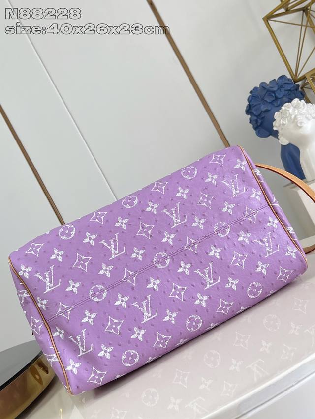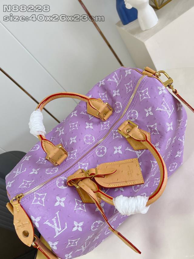 / 出厂价p 顶级原单 N88228鸵鸟纹丁香紫 本款 Speedy BandoulièRe 40 Monogram Leather 手袋为柔软粒面牛皮革包裹羊皮革
