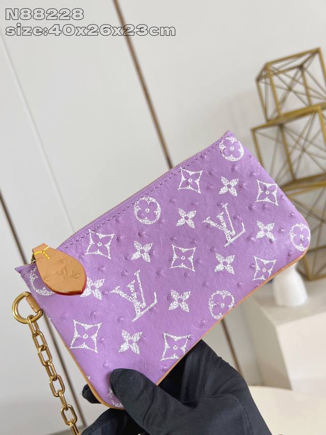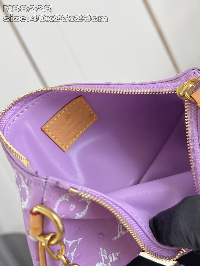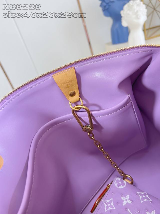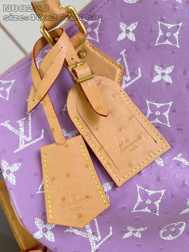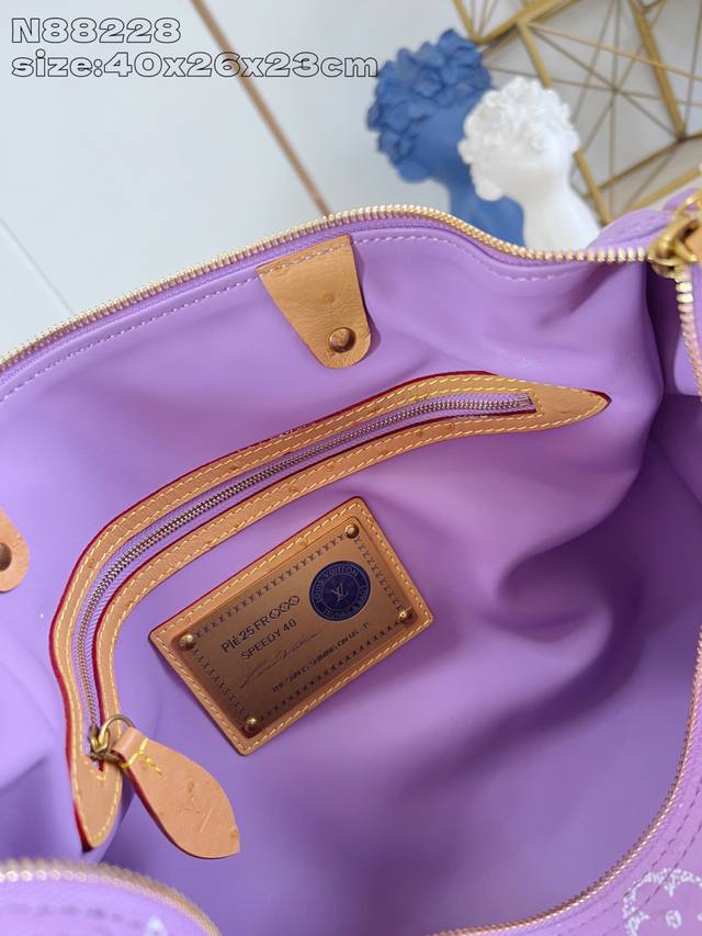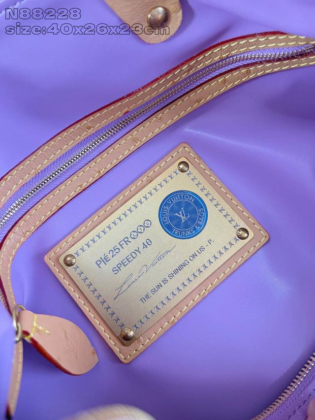 / 出厂价p 顶级原单 N88228鸵鸟纹丁香紫 本款 Speedy BandoulièRe 40 Monogram Leather 手袋为柔软粒面牛皮革包裹羊皮革