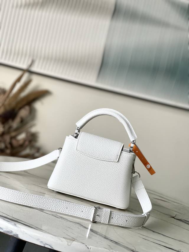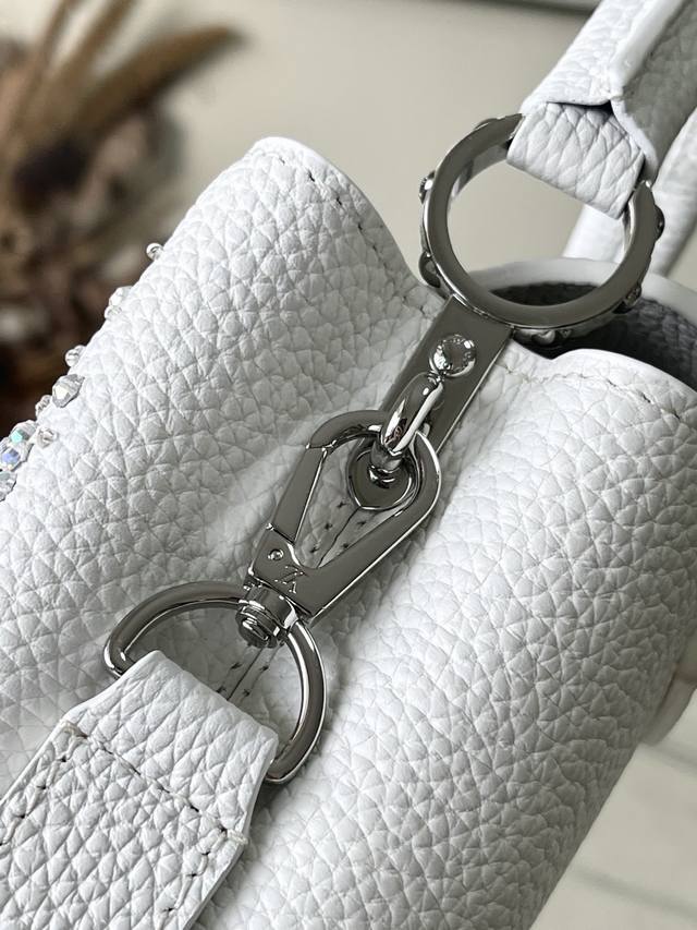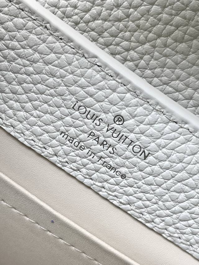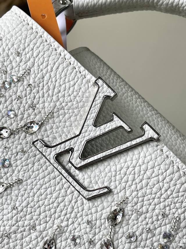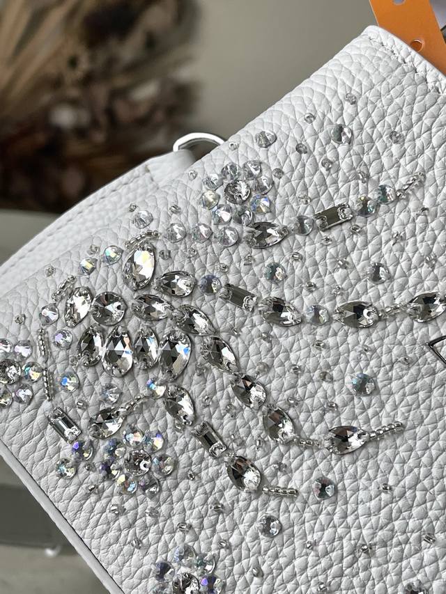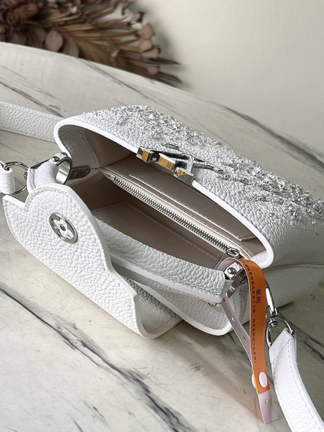 出厂价p 特级原厂皮 M25934 白色迷你 作为“非凡系列”的一部分,这款卡普尼迷你包重新设计,采用了精致的刺绣工艺。它由小牛皮制成,装饰着闪耀的亮片,呈现出