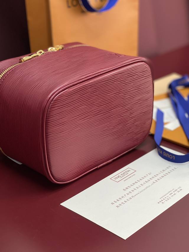 出厂价p M25856 紫色 中号!水波纹化妆包 当季新款 Nice Nano 化妆包 本款 Nice Nano 化妆包以粒面 Epi 皮革和可水洗织物内衬构筑华美格调,与路易威登美妆系列的唇膏色彩巧妙呼应。双拉链开合和内贴袋彰显功能考量,精巧构型可轻松容纳洗漱用品和化妆品,成就又一旅行良伴。13.5 X 12 X 20 厘米。 DDD