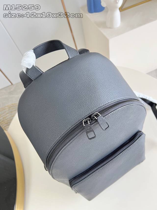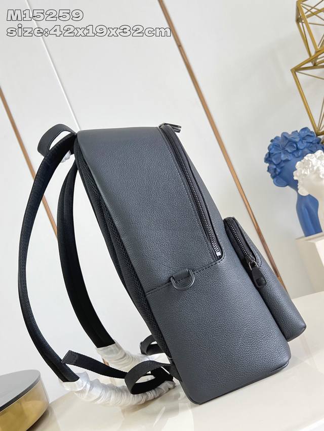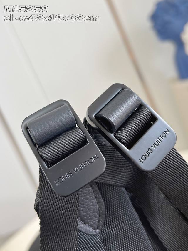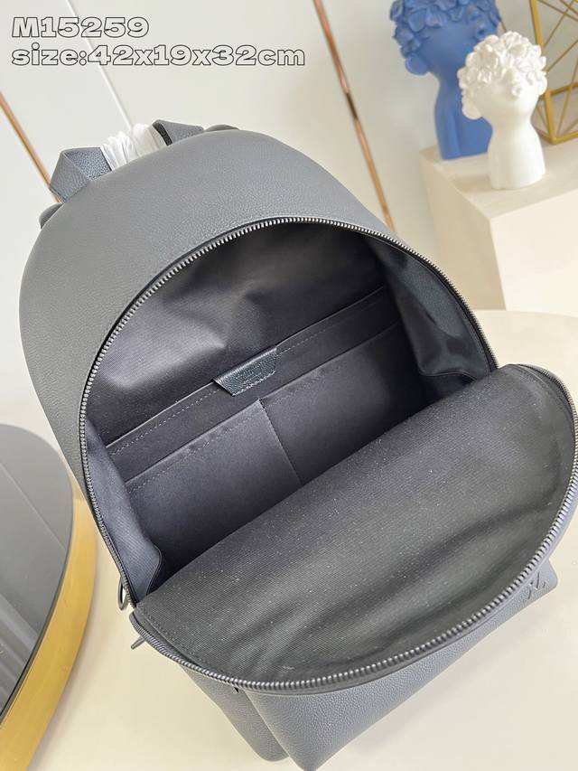 独家实拍 M15259 Discovery Work 双肩包以蜡面牛皮革和织物内衬塑造宽敞构型,适宜收纳日常所需。加衬隔层和贴袋可分别存放 14 寸笔记本电脑和手机,压印 Lv 字母的拉链外袋实现便捷取放。42 X 19 X 32 厘米 高 X 宽 X 长度 DDD