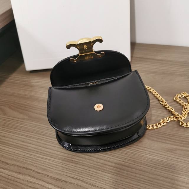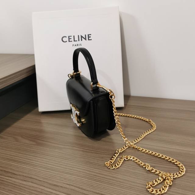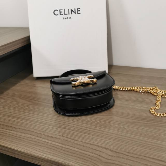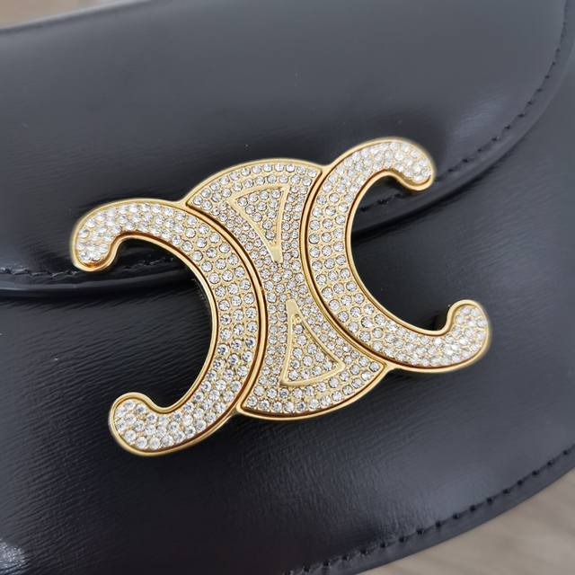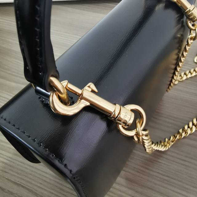 / 正品级 Besace Triomphe迷你亮泽牛皮革水钻锁扣链条手袋 本款型无法装下plus等偏大的智能手机机型 斜挎和肩背 Triomphe金属按扣开合,饰有