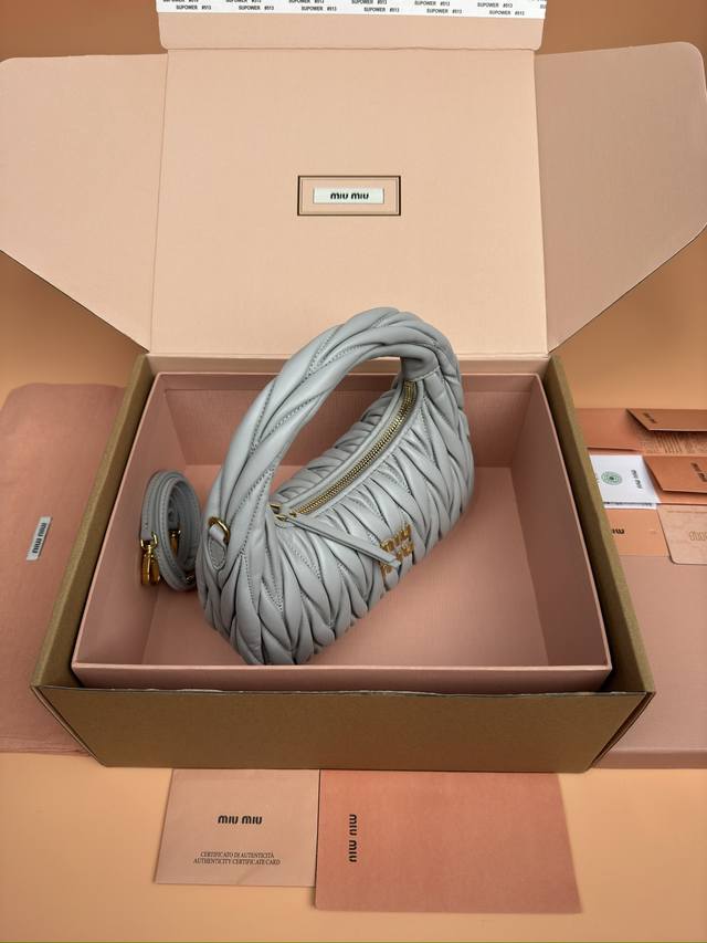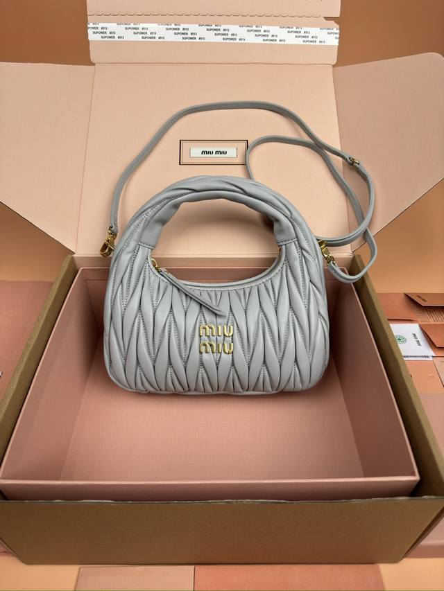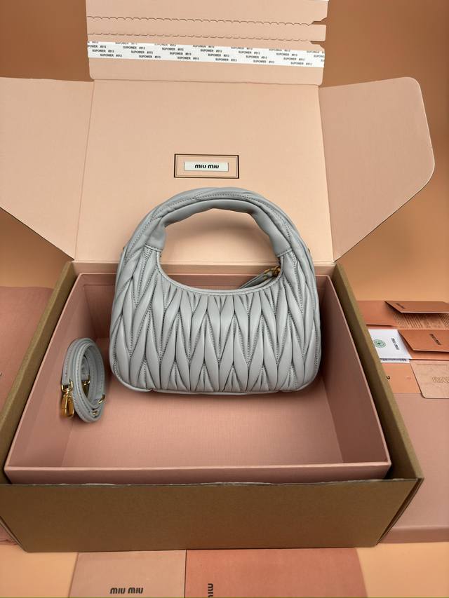 原厂皮 ,配图片包装 DDD 特级五金原厂皮 Wander Matelasse羊皮革Hobo手提包 斜挎包~20Cm灰蓝色羊皮 DDD Wander手提包已成经典配饰之。这款迷你手袋选用Matalasse羊皮革打造,运用精湛工艺打造三维立体效果,尽显精致优雅。呈现Hobo包版型,融合复古风情与现代优雅,成为现代女性气质的新代名词。 DDD ~金色配件 DDD ~拉链开合 DDD ~正面金属刻字徽标 DDD ~棉质缎面衬里 DDD 尺寸:W20×H17×D6Cm DDD 編號:_5Bc125 DDD