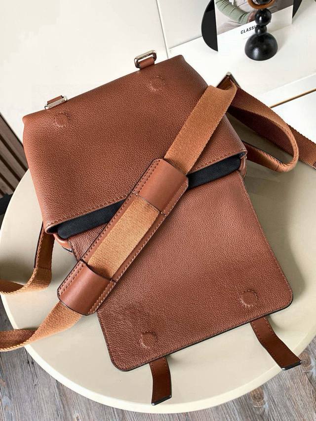 原厂皮 L0Ewe新款Xs邮差包 Military Messenger经典信使包 ,此款一改过去经典邮差包做法,设计了拉链主隔层,前部搭配搭扣打开方式放隐私物品