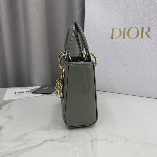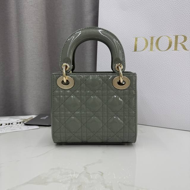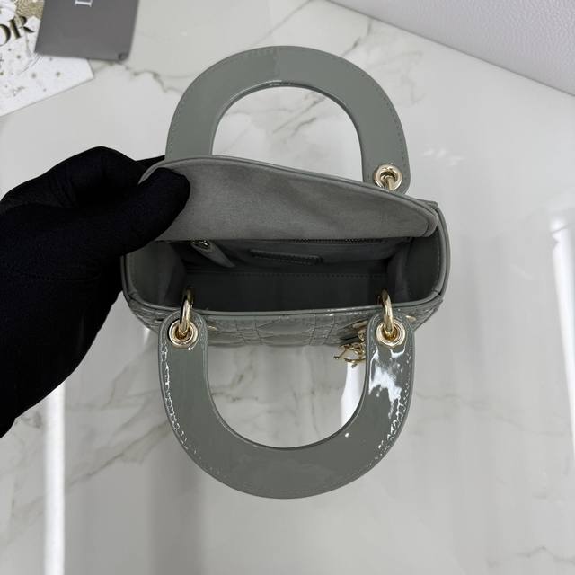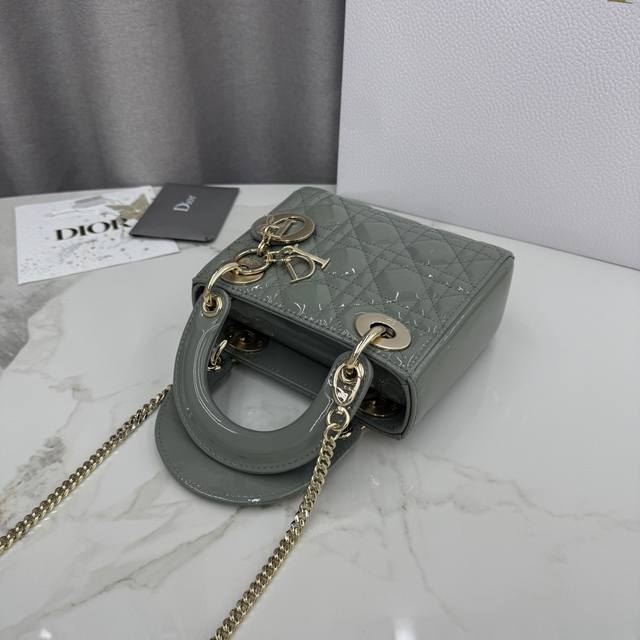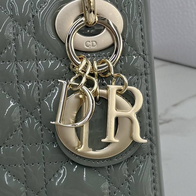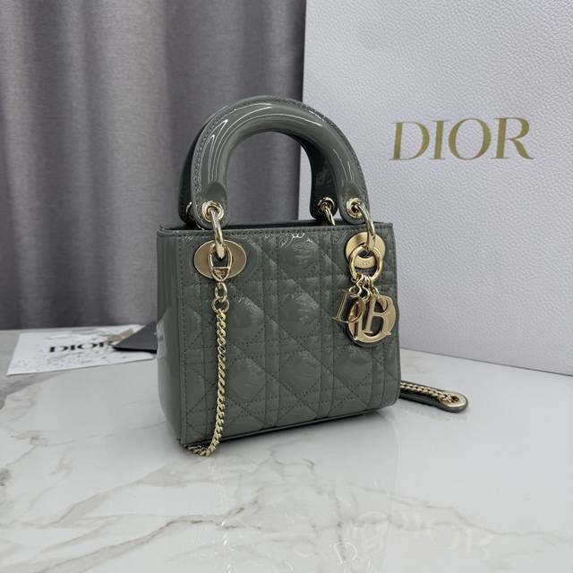 顶级原单三格岩石灰漆皮-金扣戴妃包-编号: M0505 DDD 这款 Lady Dior 手袋集中体现了 Dior 对优雅和美丽的深刻洞见。采用岩石灰漆皮牛皮革精心制作,以藤格纹缉面线打造经典醒目的绗缝纹理,时髦典雅的设计经久不衰。点缀以浅金色饰面金属 D.I.O.R. 吊饰,为精美的轮廓增添一分灵动。迷你款式,搭配可拆卸的链条肩带,可手提或斜挎,是晚装的理想伴侣。 DDD 主体:牛皮革 DDD 里料:羊皮革,牛皮革 DDD 可拆卸链条 DDD 内部拉链口袋 DDD 可随心搭配其他 Dior 刺绣肩带 D