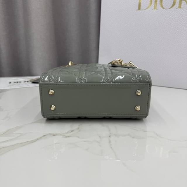 顶级原单三格岩石灰漆皮-金扣戴妃包-编号: M0505 这款 Lady Dior 手袋集中体现了 Dior 对优雅和美丽的深刻洞见。采用岩石灰漆皮牛皮革精心制作
