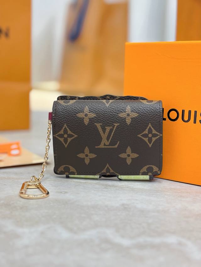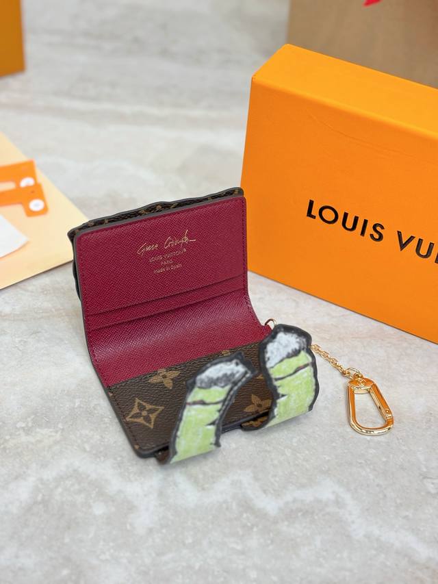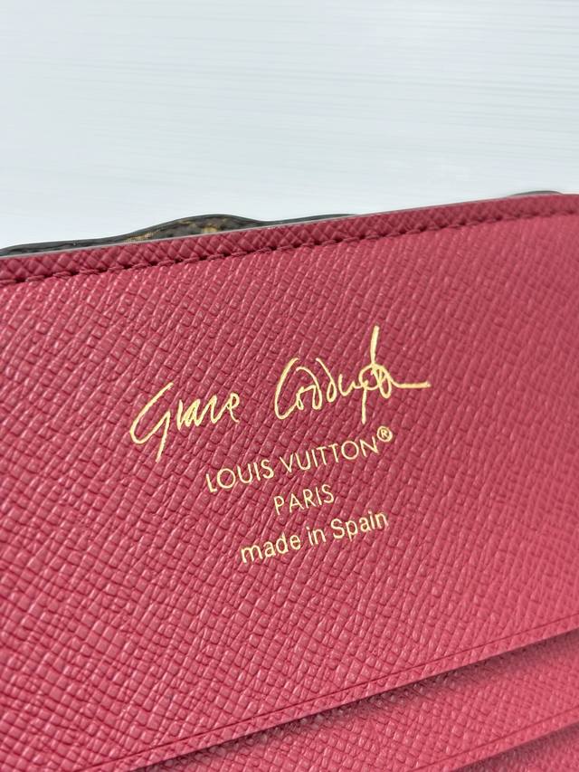 pawket 钱包 DDD M25732 DDD pawket 钱包取材牛皮革和帆布,为经典 Monogram 图案融入 Coddington 手绘的猫咪插画图案,巧妙道出 Travels With Grace Coddington 系列身份。卡片夹层和金属件完善功能考量,钩扣可固定于其他配饰之上。 DDD Size:10.5X8X1Cm DDD