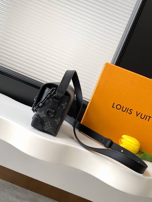 动态163C芯片 顶级原单加强版 M81783 本款 Steamer 迷你手袋取材 Monogram Eclipse 帆布,向路易威登 Steamer 硬箱汲取链条和饰针元素。适宜尺寸可容纳出行所需,搭配拉链内袋和可调节肩带。18.0 X 11.0 X 6.5 厘米 长 X 高 X 宽 DDD