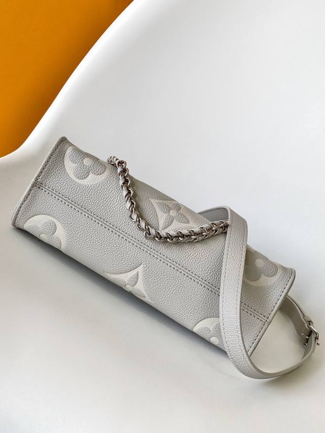 C01动态芯片 顶级原单 独家实拍 M14213浅灰M23641灰色丝印 M23698白 M23640黑色本款 Onthego 小号手袋为 Monogram 皮革压印 Giant Monogram 图案,彰显柔美修长廓形。紧凑内部空间可有序收纳日常所需,铰接式顶部手柄和可拆卸皮革编织链条肩带实现多种背携选择。25.0 X 13.0 X 10.0 厘米 长 X 高 X 宽 DDD
