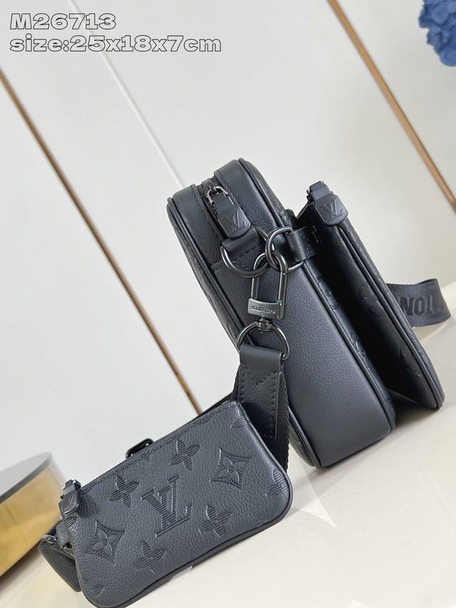 / 出厂价p 海外顶级原单 M26713黑 本款 Trio Messenger 邮差包取材柔软 Monogram Shadow 牛皮革,搭配 Monogram Sh