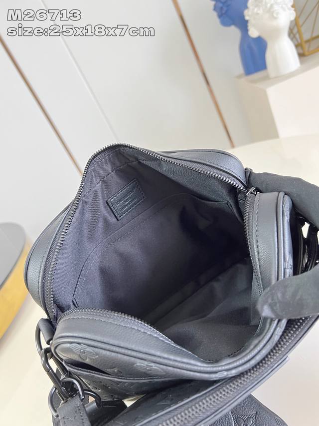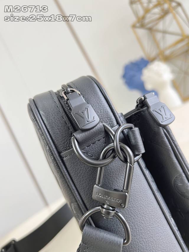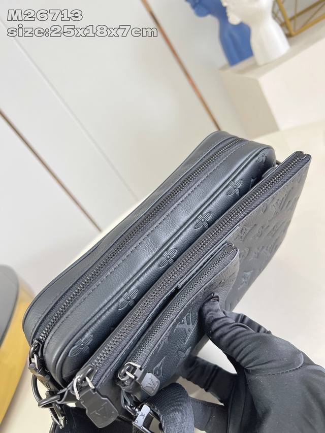 出厂价p 海外顶级原单 M26713黑 本款 Trio Messenger 邮差包取材柔软 Monogram Shadow 牛皮革,搭配 Monogram Shadow 皮革袢带与主袋。拉链前袋、肩带与点缀其上的零钱包均可拆卸。肩带亦可调节,确保背携舒适贴合。25 X 18.5 X 7 厘米 长 X 高 X 宽 DDD