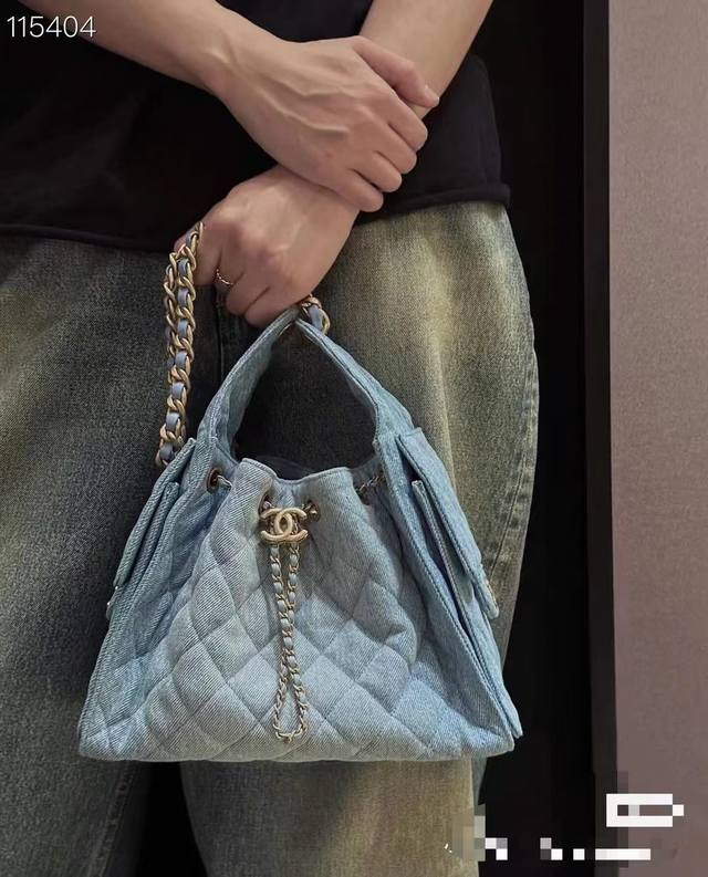 5293独家对版货!出货啦、小號尺寸Ohanel25p春夏牛仔新款嬉皮 亮面黑金 随性慵懒的包型当之无愧的春夏度假王者了 !知性优雅大女主典范 不仅仅是美观更是实用主义完全契合当下大多数人对包的期望值 材质:牛仔布与金色金属 ! DDD
