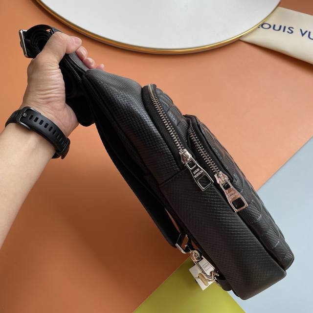 原单货 最新款式 Lv 男士胸包火爆出货 实物拍照无添加任何效果 原版进口头层牛皮皮质手感柔软舒适贴心设计耳机线钻孔,采用专用五金.原版里布资深裁缝独特休闲高档