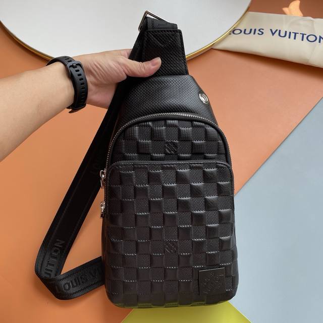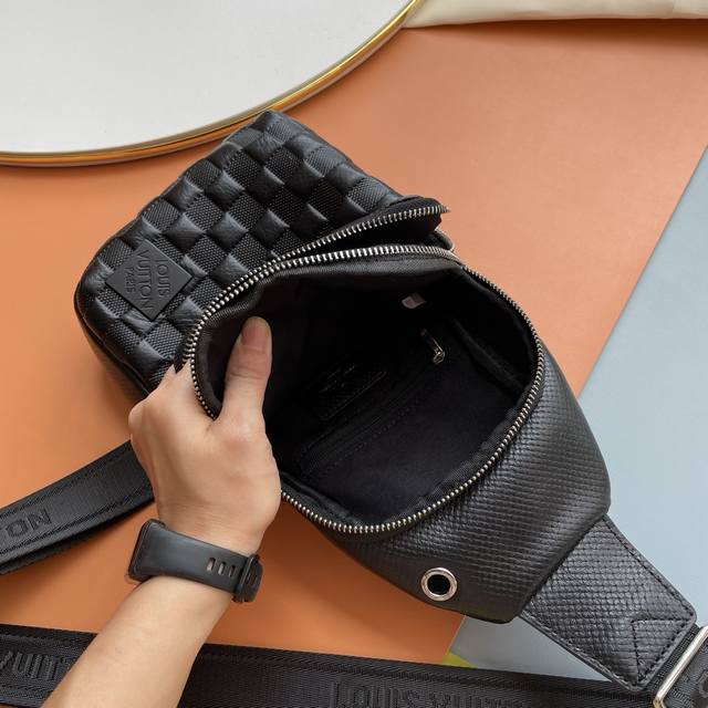 / 原单货 最新款式 Lv 男士胸包火爆出货 实物拍照无添加任何效果 原版进口头层牛皮皮质手感柔软舒适贴心设计耳机线钻孔,采用专用五金.原版里布资深裁缝独特休闲高档