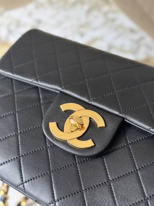 贝嫂同款 羊皮 棕色 现货 Chanevintage绝版大金扣Cf Ohanel Classic Flap Bag是1983年老佛爷接手Ohanel后对香奈儿女