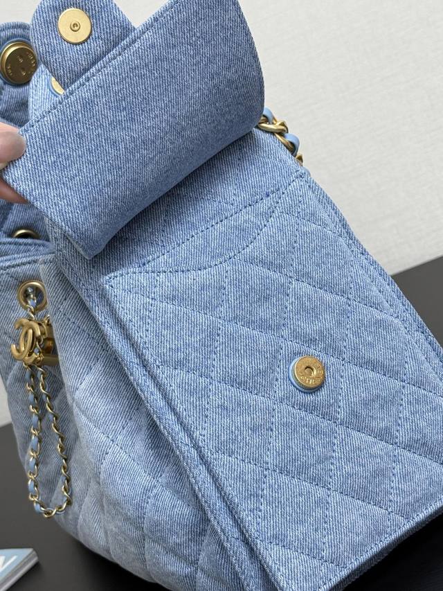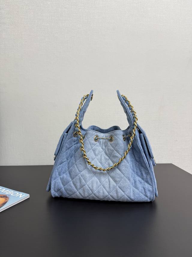 现货25A水桶抽绳包!单宁牛仔浅蓝 DDD 香家系列新添一个小可爱,它的本体其实是一个小水桶包,柔软的水洗牛仔布,很像刻意而为之的精心搭配.大大的双C Logo设计,可以调动!迷人的小细节,链条不可调节、溜金搭配,五金选用的复古做旧金,非常有中古的味道,忍不住称绝的一款 Size:27*20*13Cm99459 DDD