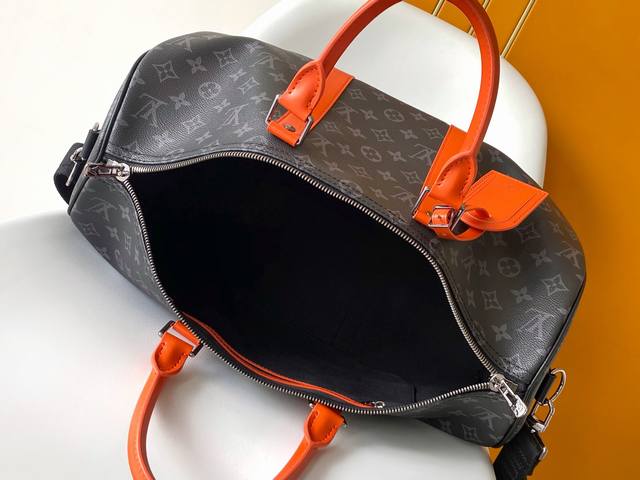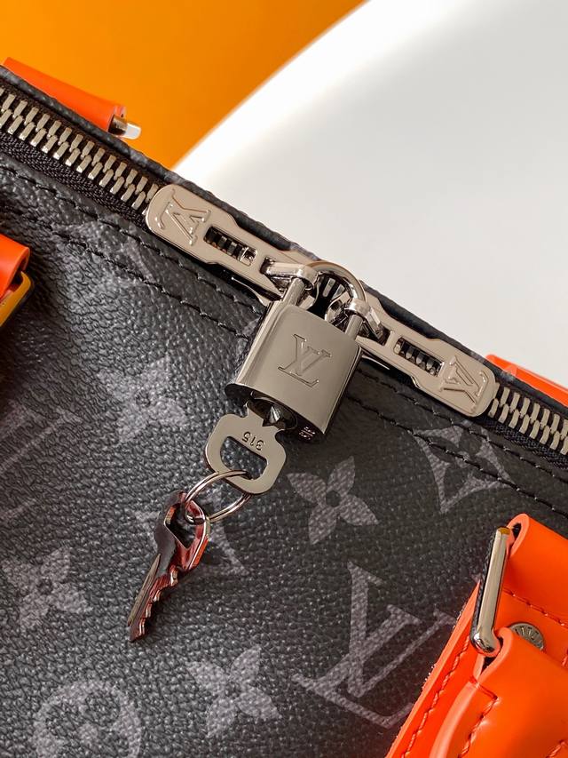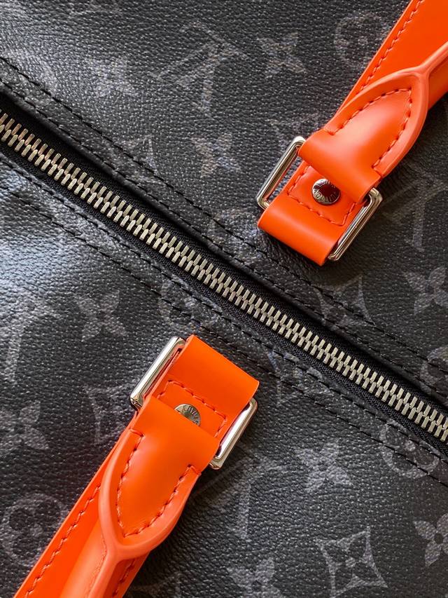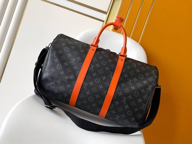 M15251黑花橘红45Cm 163C01变码芯片 本款Keepall BandoulièRe45旅行袋取材Monogram Edipse帆布,以明丽色调勾勒皮革侧带、手柄和镶边,搭配织物内衬和拉链内袋。可调节并拆卸的宽幅肩带拓展背携选择,令随身上机的紧凑构型灵活伴行。 DDD 45 X 27 X20厘米 长度X高X宽 DDD Monogram Eclipse 涂层帆布牛皮革饰边织物内衬金属件 DDD 随身上机行李尺寸双拉链开合挂锁 DDD 可拆卸名牌拉链内袋 DDD 手柄:双手柄 DDD