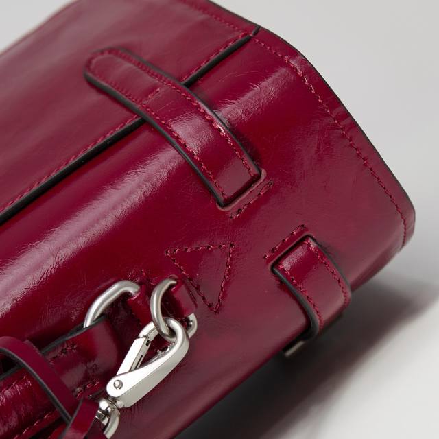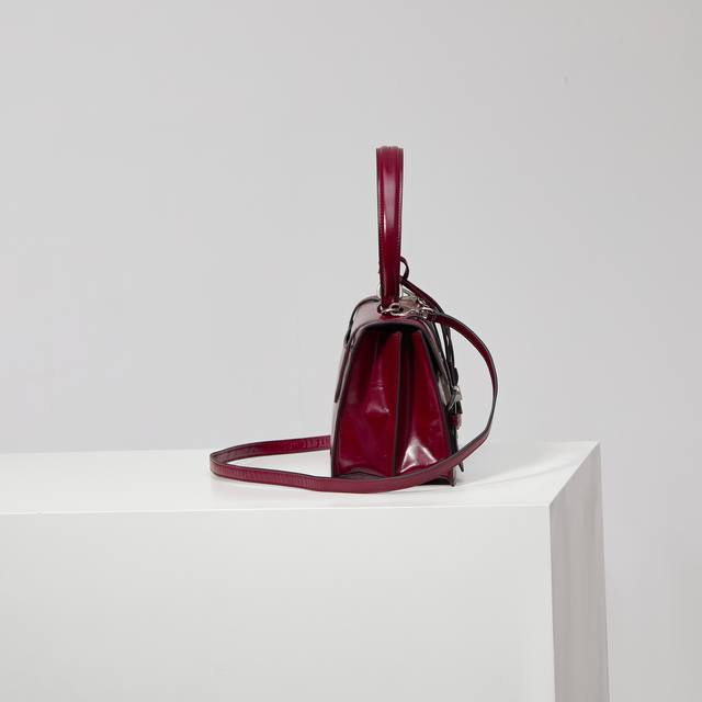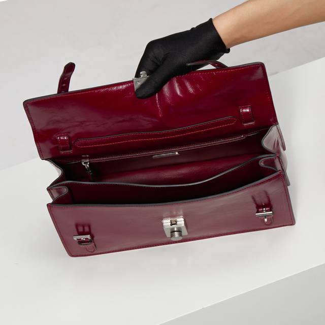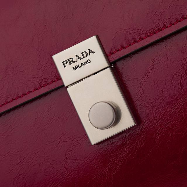 特级原厂 25Ss春夏新款 笔筒包1Bn026 苋菜红色 小号到货这款皮革手袋灵感源自挺括正式的公文包,质感细腻亮泽,以全新态度重释经典办公风格廓形。采用精致柔