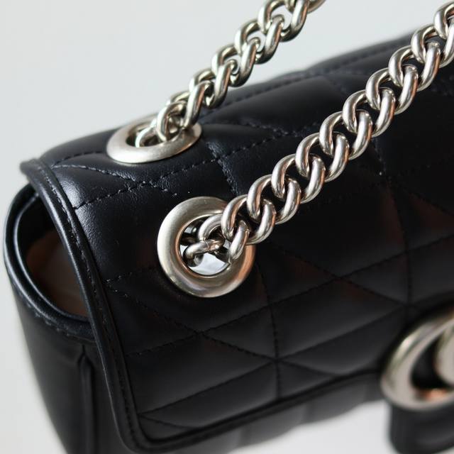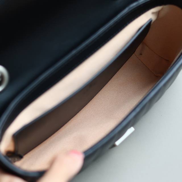 Gucci Marmont 经典&百搭 Gucci马蒙链条包经典尺寸: 16Cm 22Cm 26Cm 经典金扣双Glogo复古做旧五金波浪纹衔缝牛皮采用的是小牛